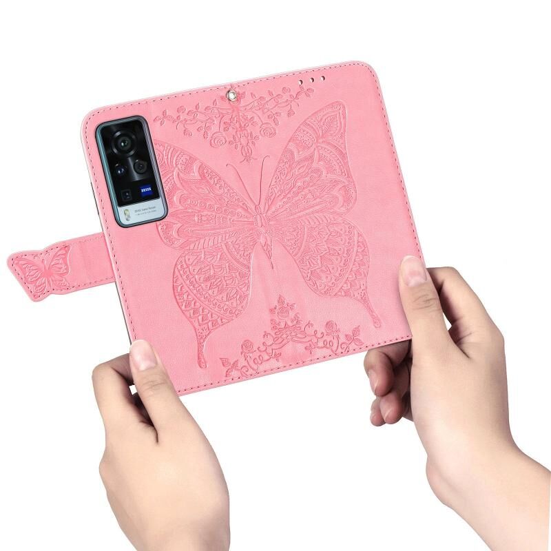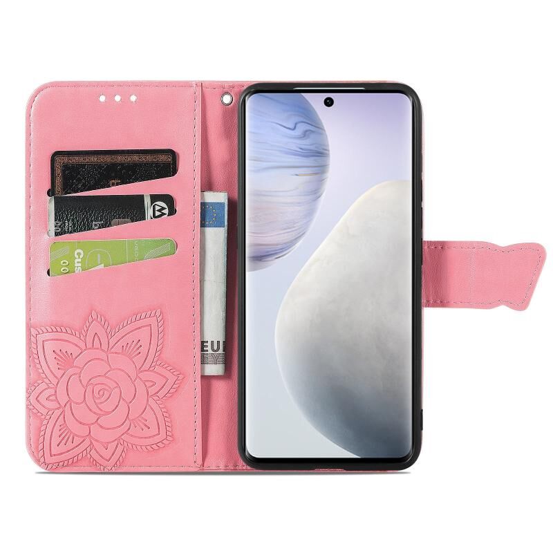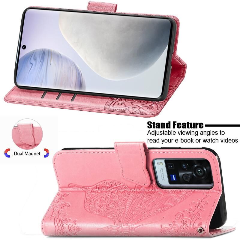 Για το vivo X60 Pro Πεταλούδα αγάπη λουλούδια ανάγλυφο οριζόντια Flip δερμάτινη θήκη με κάτοχο & υποδοχές για κάρτες & πορτοφόλι & κορδόνι (ροζ)