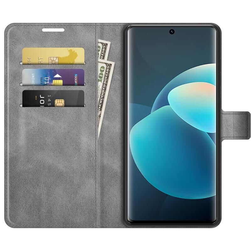 Για το vivo X60 Pro Retro μοσχάρι μοτίβο πόρπη οριζόντια Flip δερμάτινη θήκη με κάτοχο & υποδοχές για κάρτες & πορτοφόλι (γκρι)