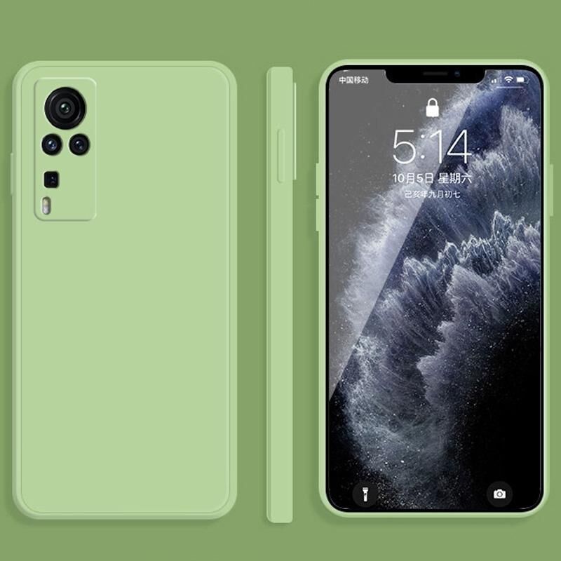 Για το vivo X60 Pro Solid Color Απομίμηση υγρού σιλικόνης Straight Edge Dropproof Full Coverage Προστατευτική θήκη (Matcha Green)