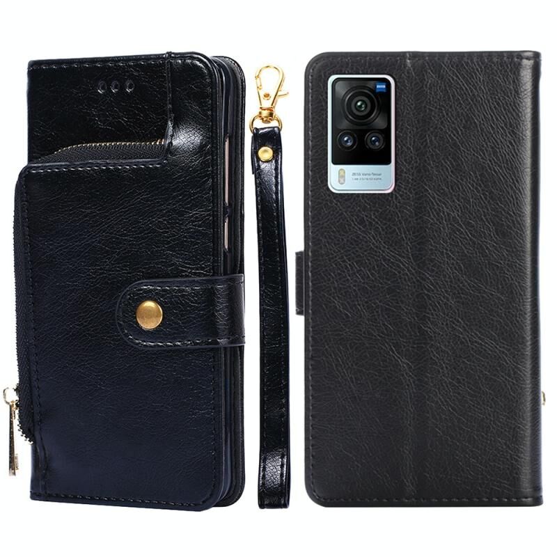 Για vivo X60 Pro φερμουάρ τσάντα PU + TPU οριζόντια Flip δερμάτινη θήκη με θήκη & υποδοχή κάρτας & πορτοφόλι & κορδόνι (Μαύρο)