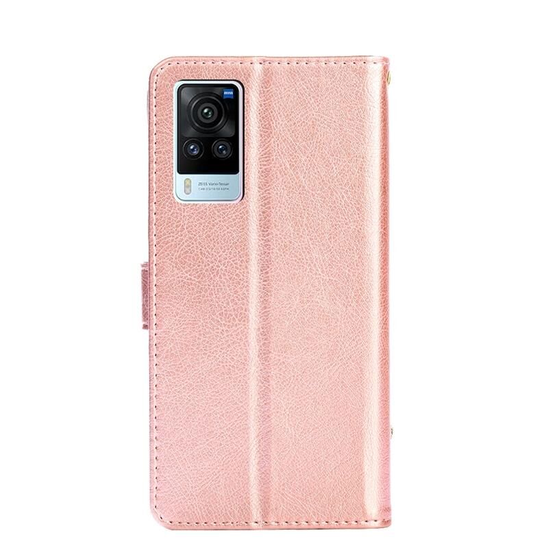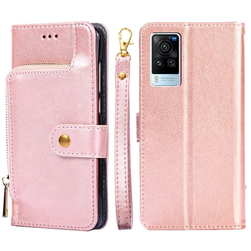 Για το vivo X60 Pro φερμουάρ τσάντα PU + TPU οριζόντια Flip δερμάτινη θήκη με υποδοχή & υποδοχή κάρτας & πορτοφόλι & κορδόνι (Ροζ χρυσός)