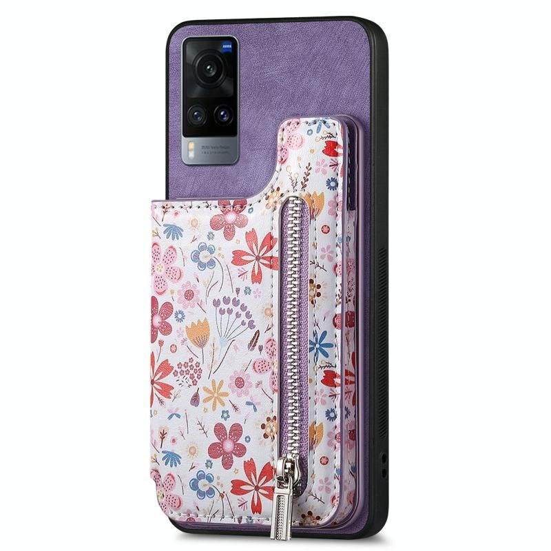 Για vivo X60 Ρετρό ζωγραφισμένο φερμουάρ πορτοφόλι πίσω υπόθεση τηλεφώνου (μωβ)