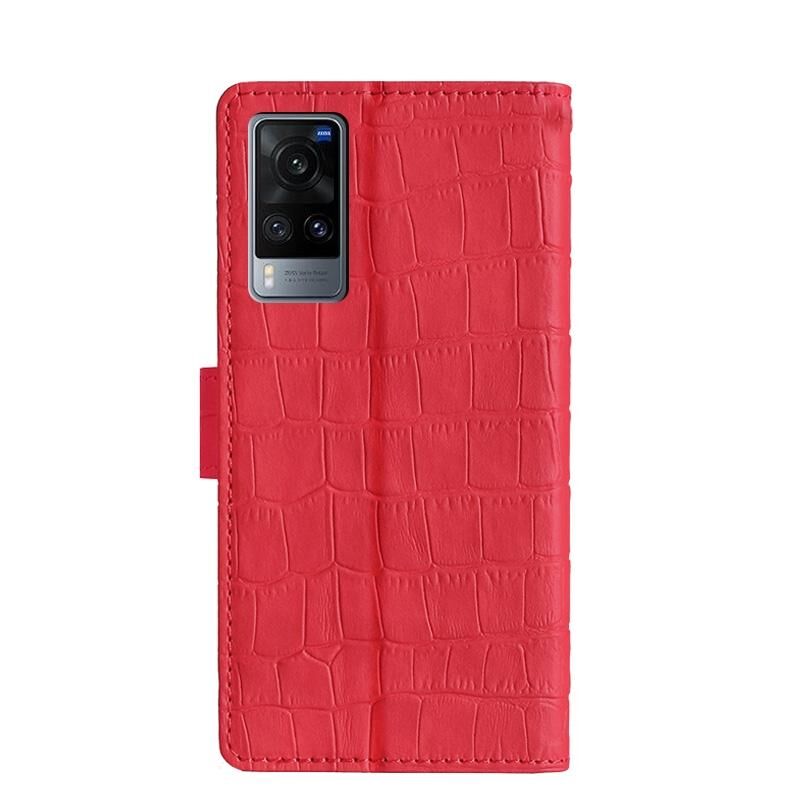 Θήκη για vivo X60 με υφή δέρματος κροκόδειλου, μαγνητικό κούμπωμα, οριζόντια αναδιπλούμενη από δερματίνη PU με βάση & υποδοχές καρτών & πορτοφόλι (Κόκκινο)