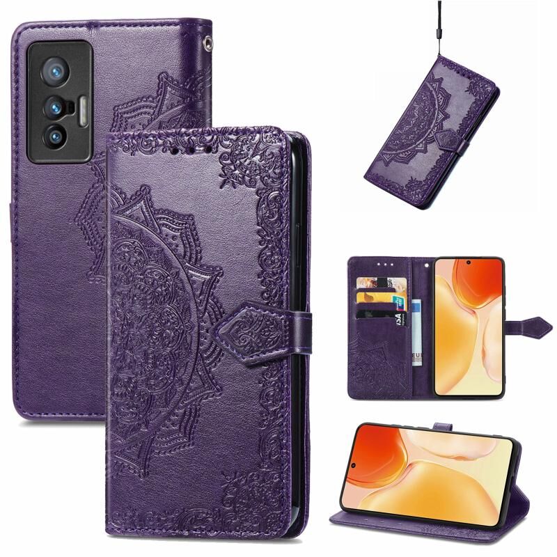 Για vivo X70 Mandala ανάγλυφο μοτίβο οριζόντια Flip δερμάτινη θήκη με κάτοχο & υποδοχές για κάρτες & πορτοφόλι & κορδόνι (μωβ)