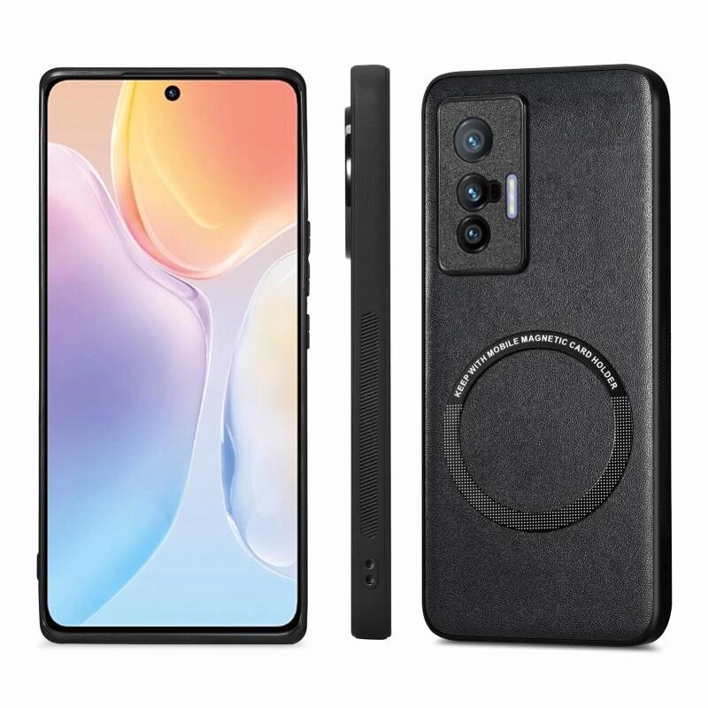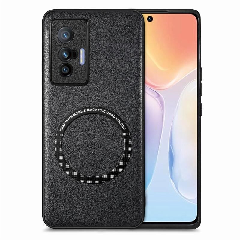 Θήκη τηλεφώνου Magsafe για vivo X70, με δερμάτινη υφή και συμπαγή χρώματα (Μαύρο)