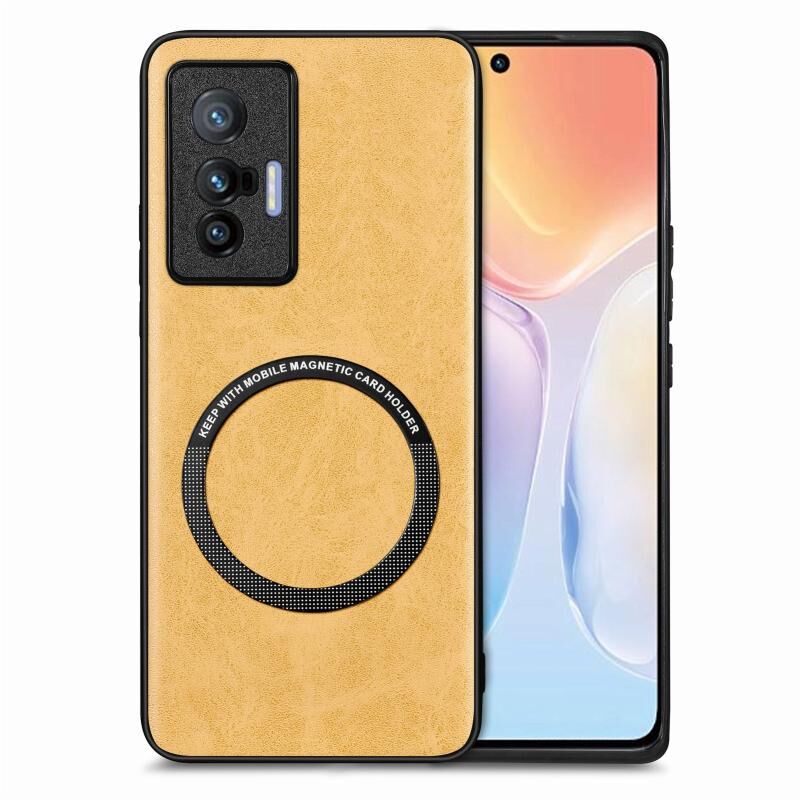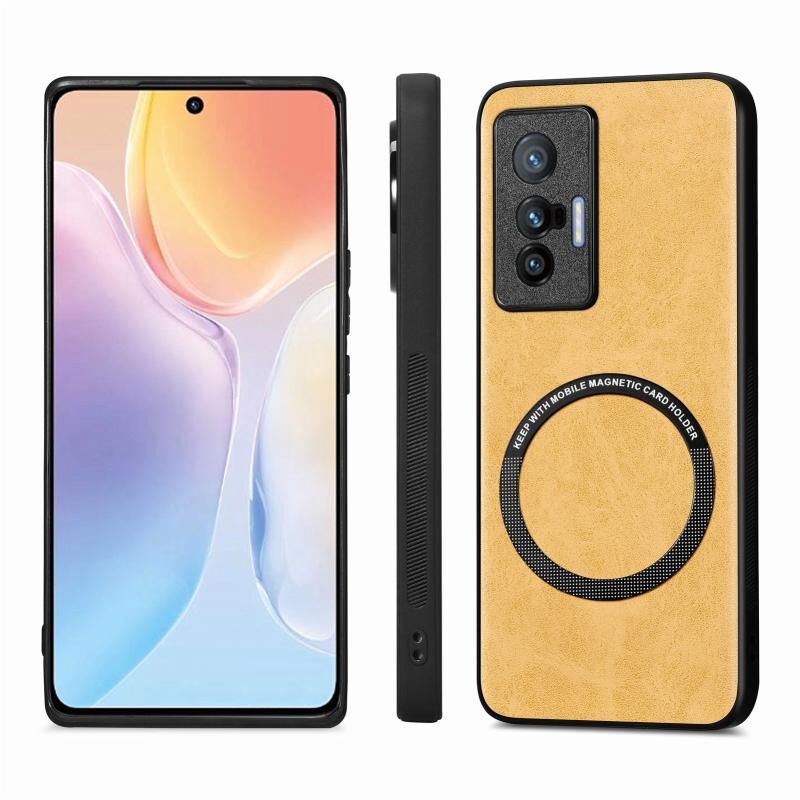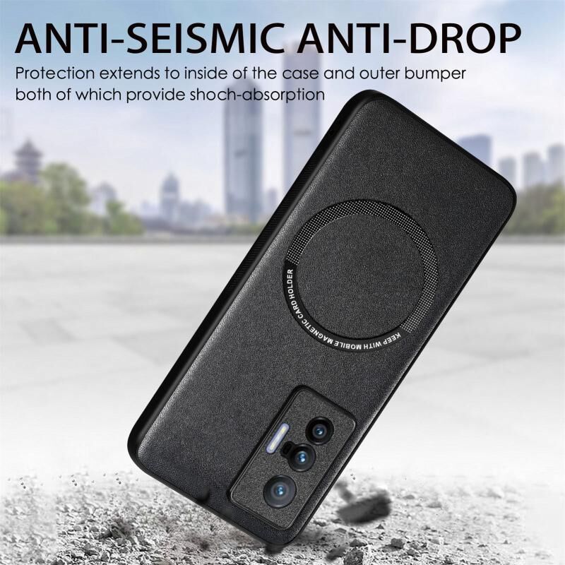 Θήκη τηλεφώνου Magsafe για vivo X70, με δερμάτινη υφή και συμπαγή χρώματα (Μαύρο)