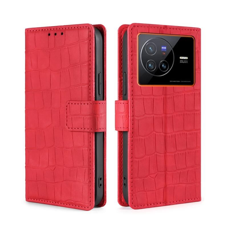 Θήκη τηλεφώνου δερμάτινη με μαγνητικό κούμπωμα και υφή κροκόδειλου για vivo X80 CN Version (Κόκκινο)