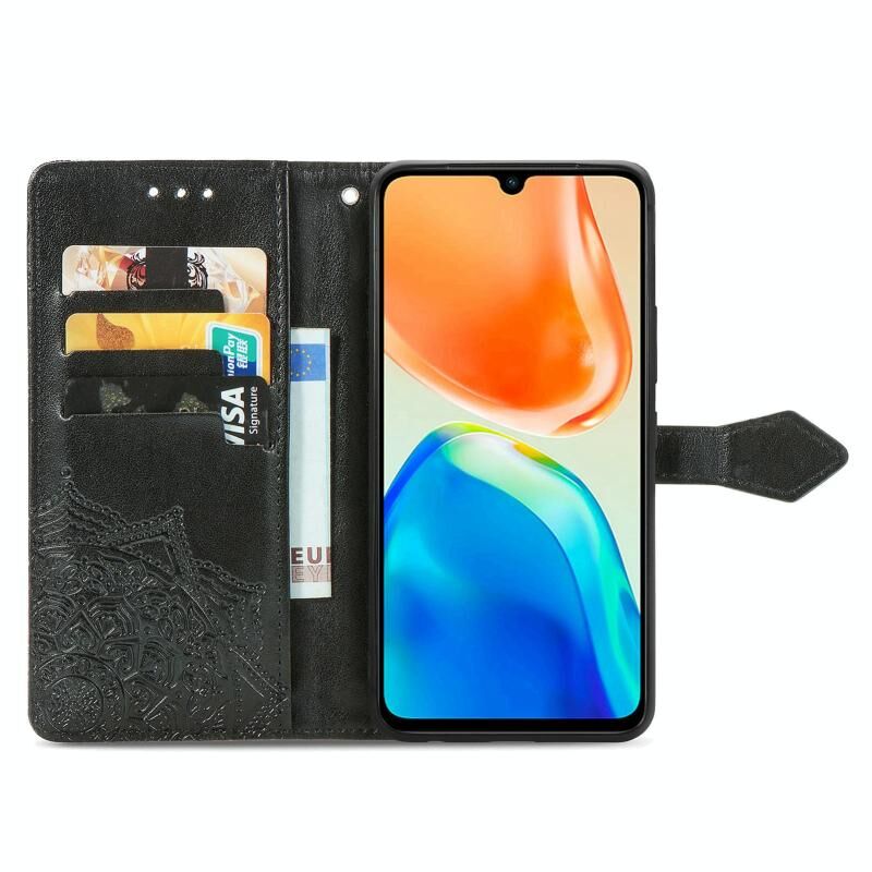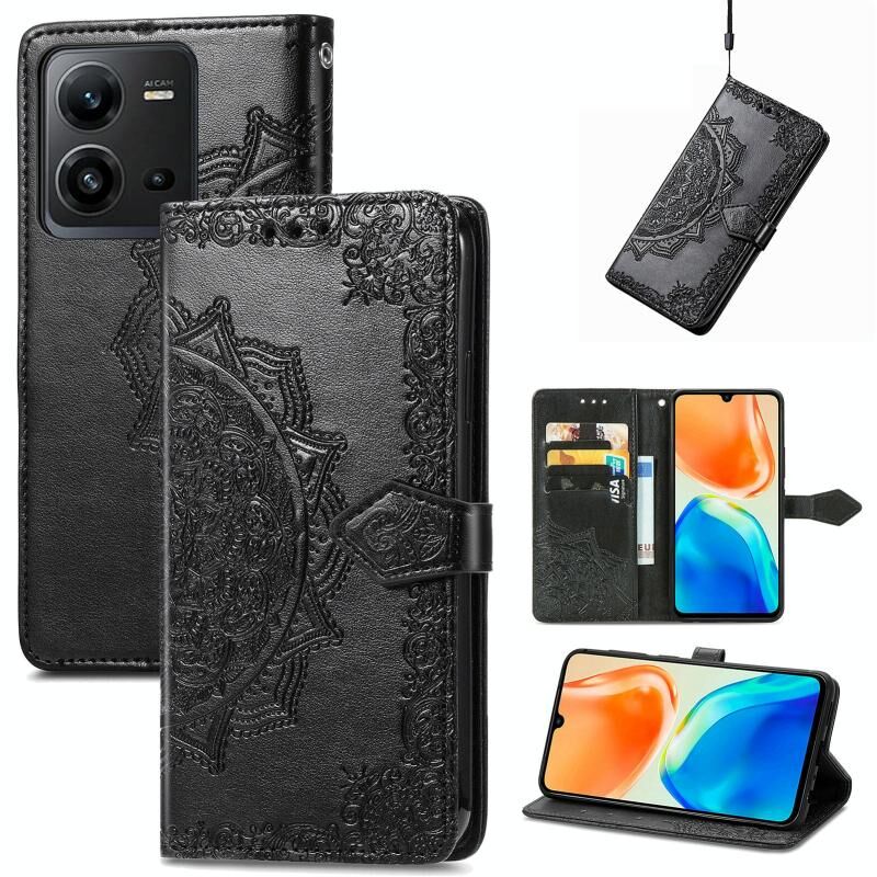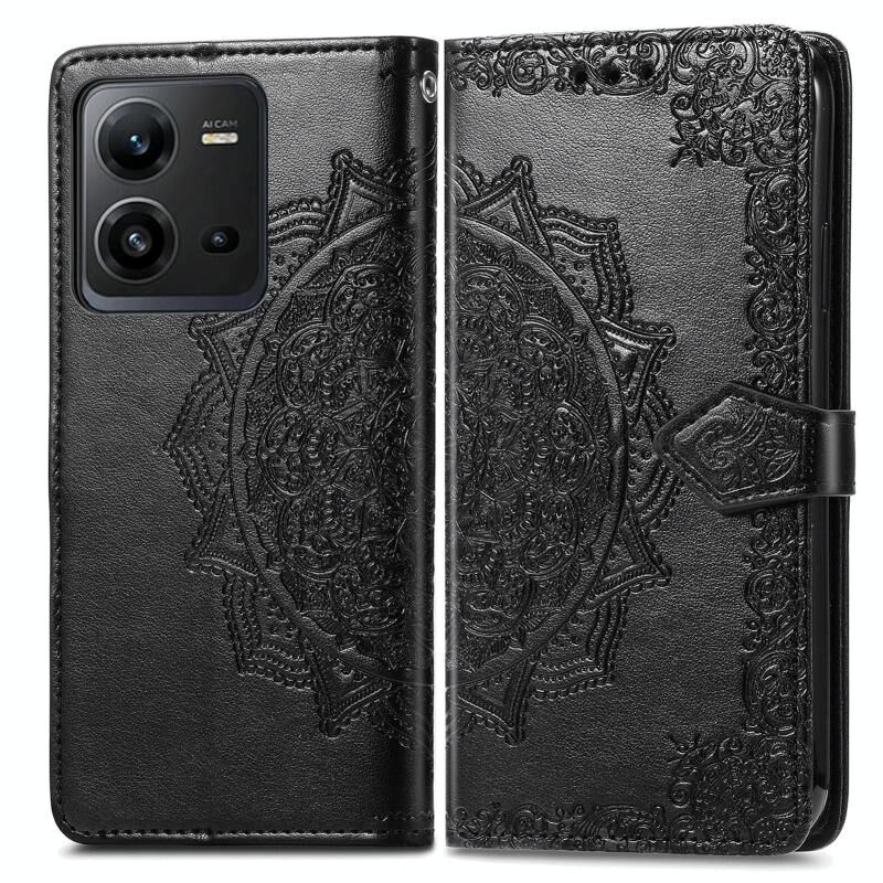 Για το vivo X80 Lite Mandala λουλούδι ανάγλυφο δερμάτινη θήκη τηλεφώνου (μαύρο)