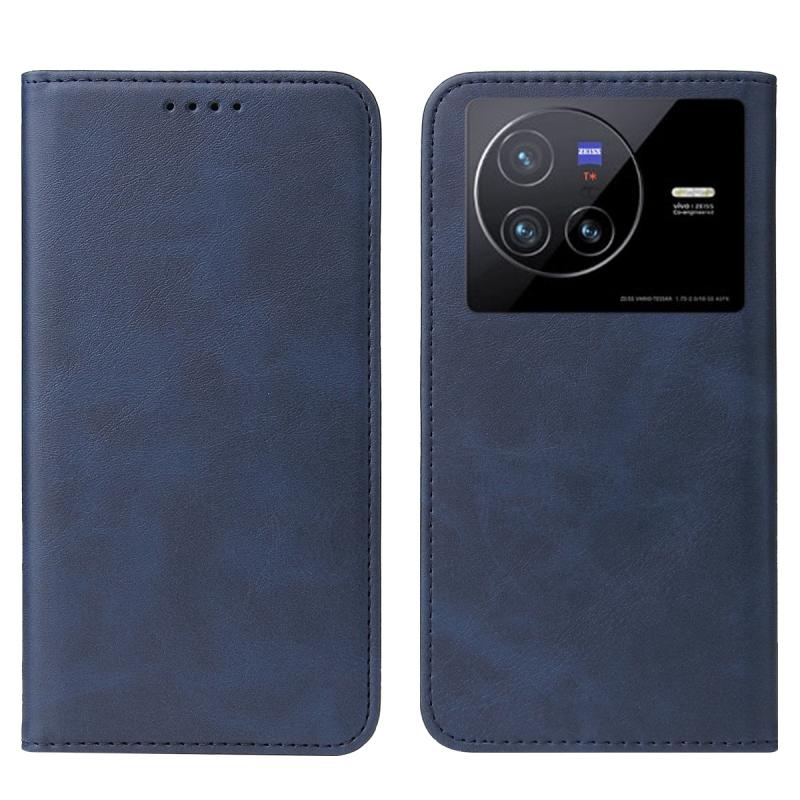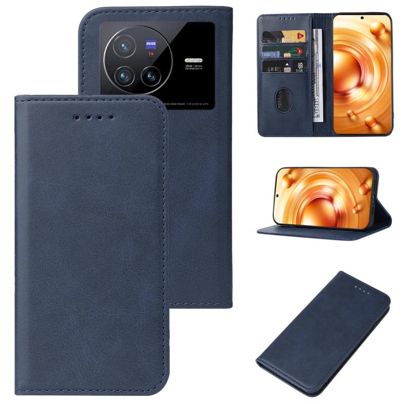 Θήκη τηλεφώνου από δέρμα με μαγνητικό κλείσιμο για vivo X80 (Μπλε)