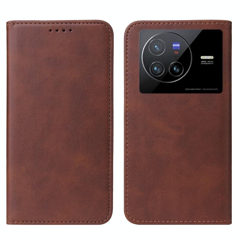 Θήκη τηλεφώνου από δέρμα με μαγνητικό κλείσιμο για vivo X80 (Καφέ)