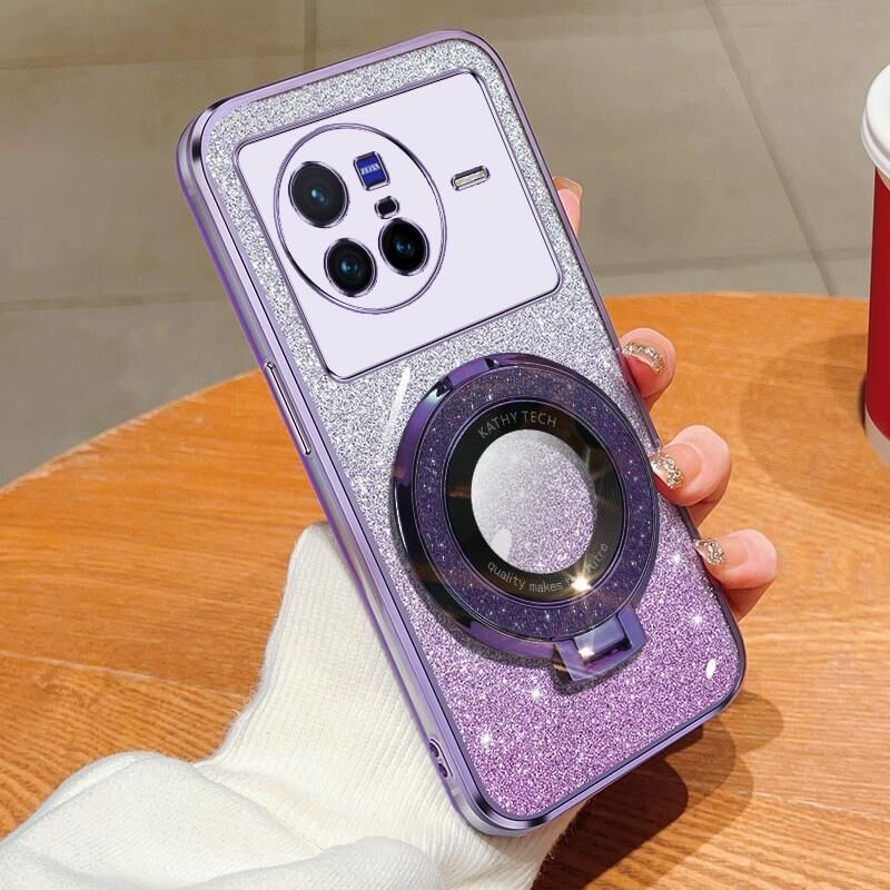 For vivo X80 Plated Gradient Glitter Round Holder TPU Phone Case(Purple)