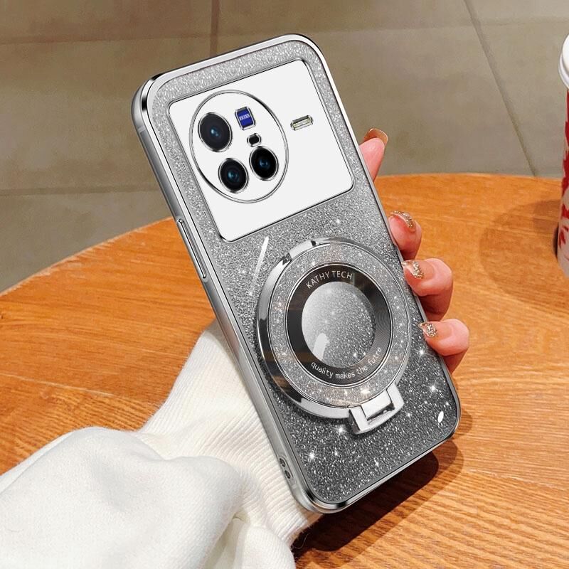 For vivo X80 Plated Gradient Glitter Round Holder TPU Phone Case(Silver)