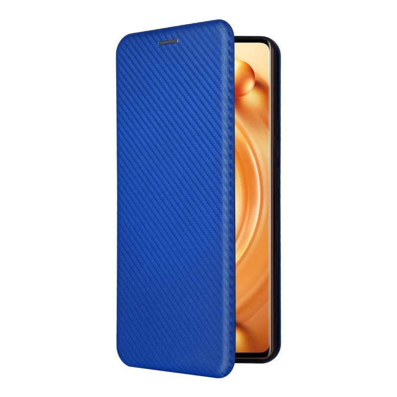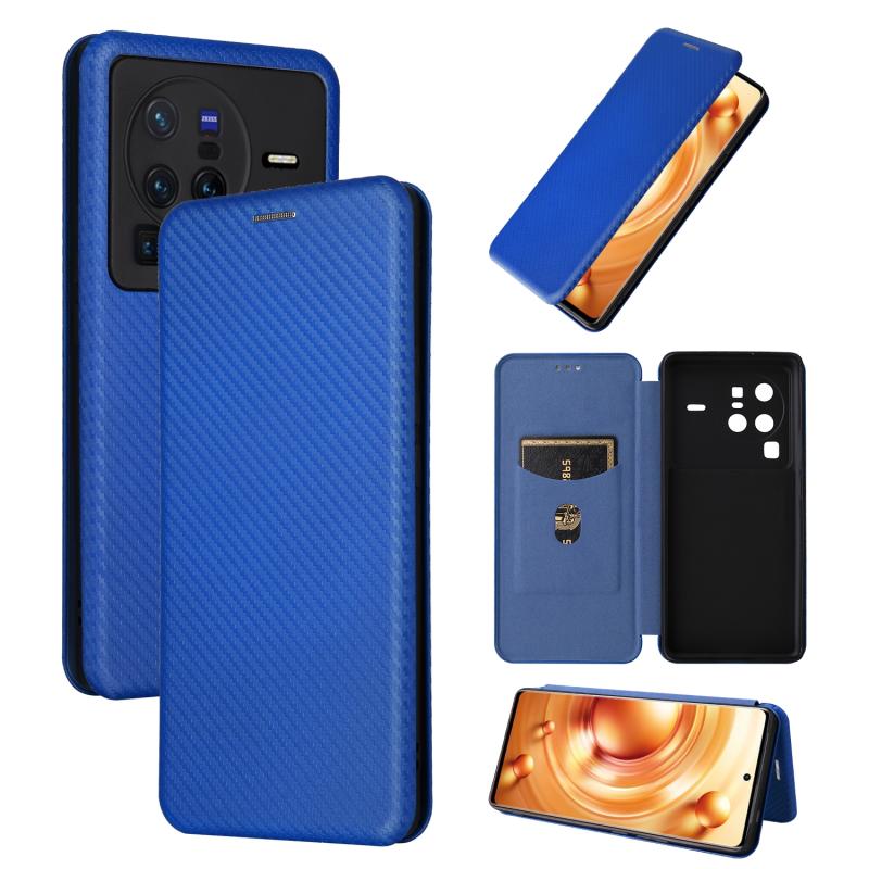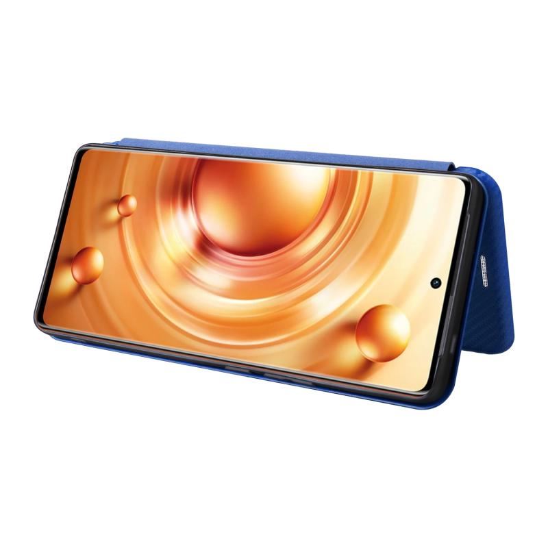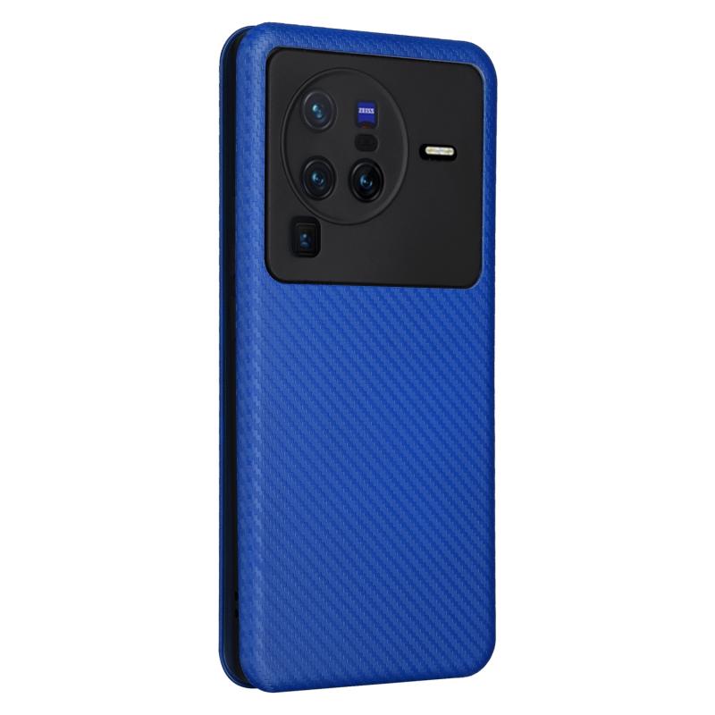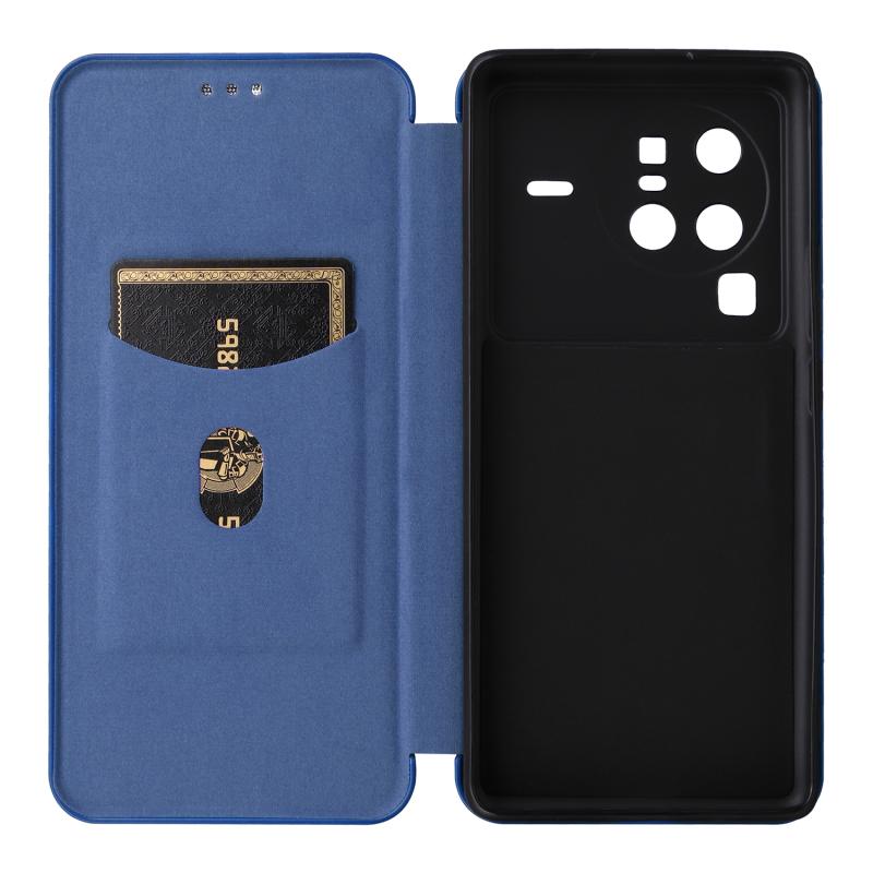 Θήκη τηλεφώνου από δέρμα με αναδιπλούμενο σχέδιο για vivo X80 Pro 5G, με υφή ανθρακονήματος (Μπλε)