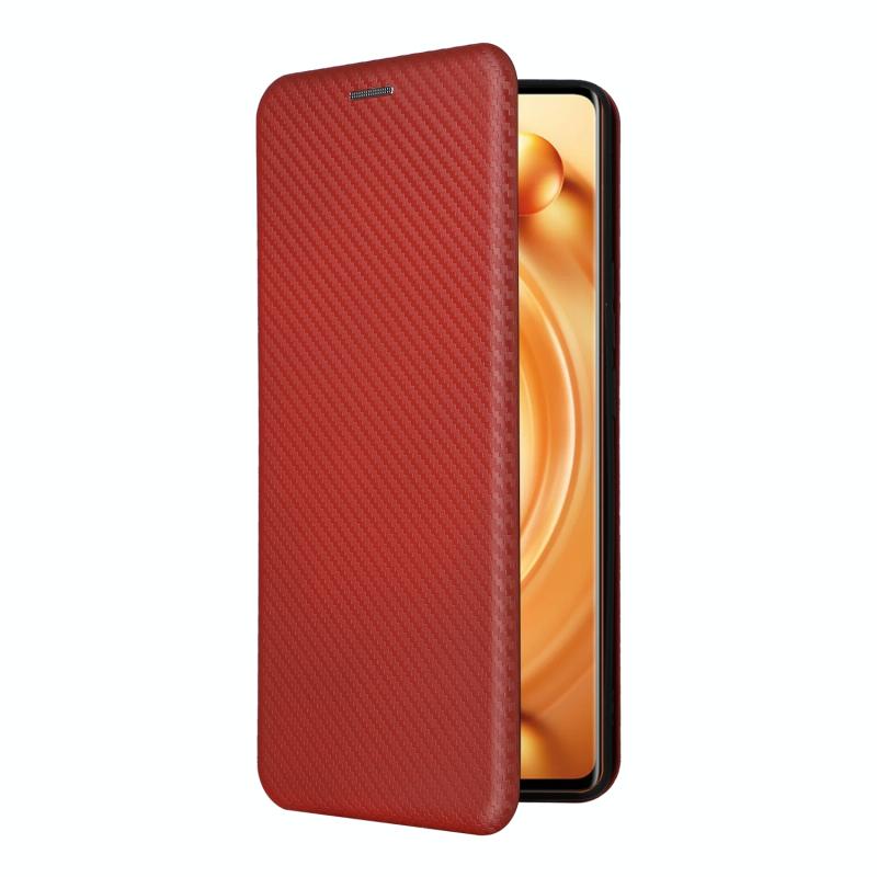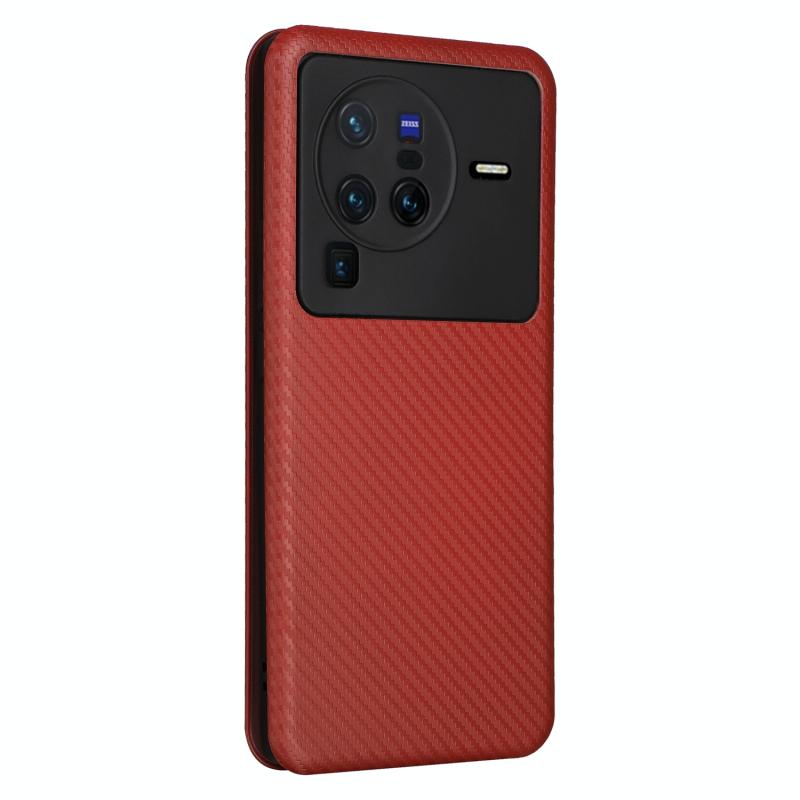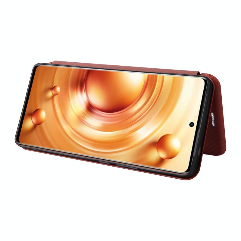 Θήκη τηλεφώνου από δέρμα με ανάγλυφη υφή ανθρακονημάτων για vivo X80 Pro 5G (Καφέ)