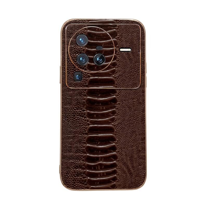 Θήκη τηλεφώνου γνήσιου δέρματος Weilai Series Nano Plating για vivo X80 Pro 5G (Καφές)