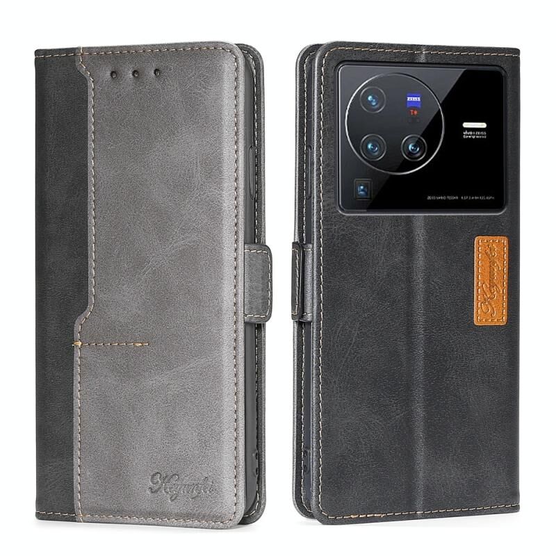 Για vivo X80 Pro αντίθεση χρώμα πλευρά πόρπη δερμάτινη θήκη τηλεφώνου υπόθεση (Μαύρο + Γκρι)