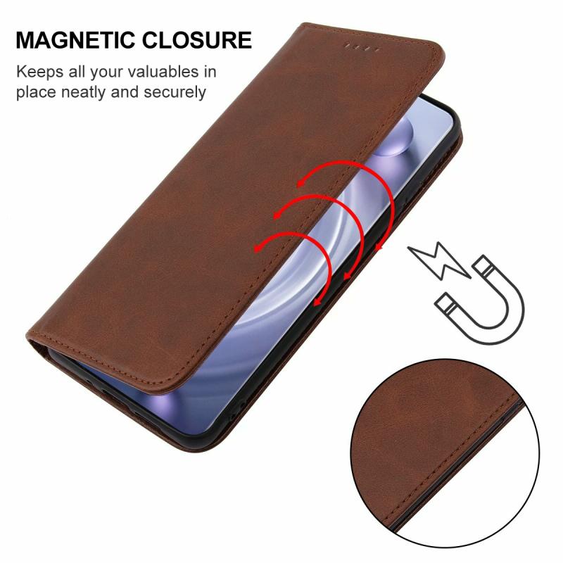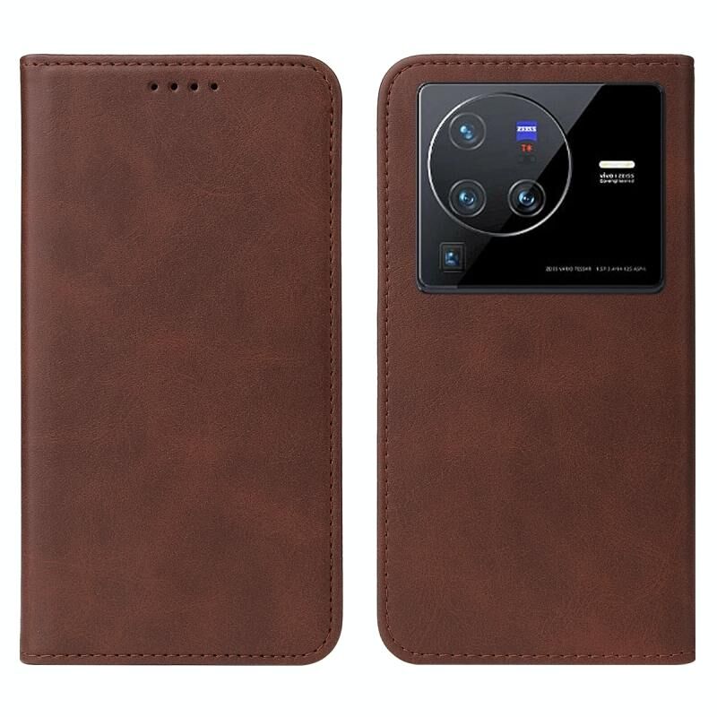Θήκη τηλεφώνου από δέρμα με μαγνητικό κλείσιμο για vivo X80 Pro (Καφέ)