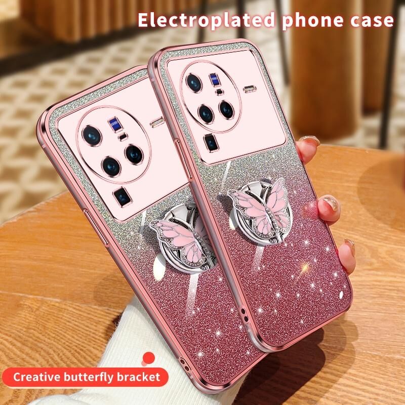 Θήκη κινητού τηλεφώνου TPU με σχέδιο πεταλούδας σε αποχρώσεις του ροζ για vivo X80 Pro (ρόζ)