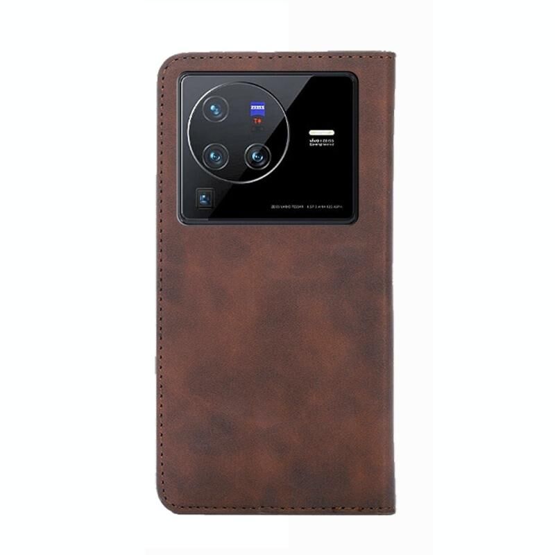 Για το vivo X80 Pro Skin Feel μαγνητική οριζόντια Flip δερμάτινη θήκη τηλεφώνου (σκούρο καφέ)