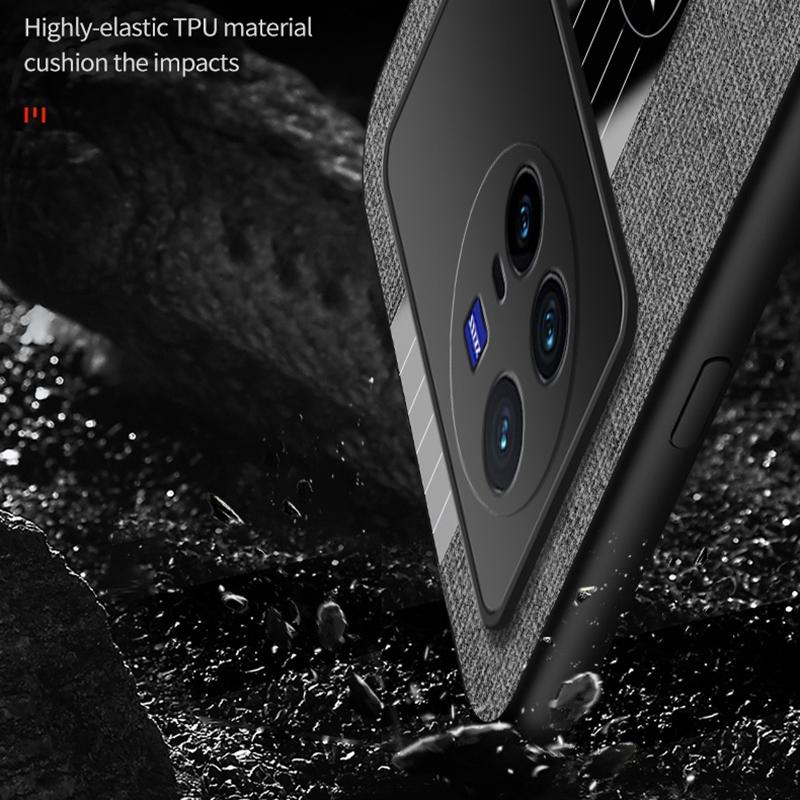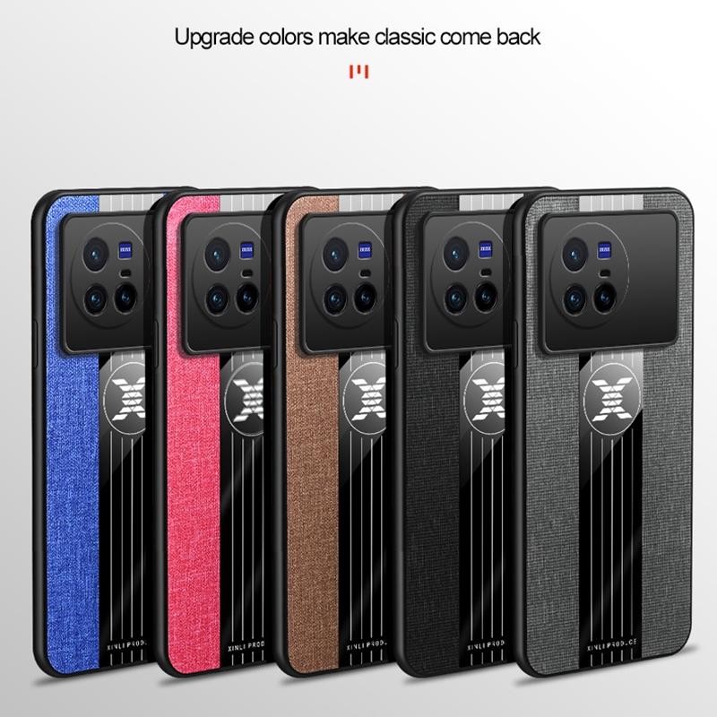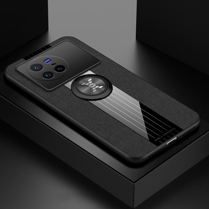 Θήκη κινητού τηλεφώνου TPU με υφή υφάσματος ραφής για vivo X80 XINLI με δακτύλιο στήριξης (Καφέ) (Μαύρο)