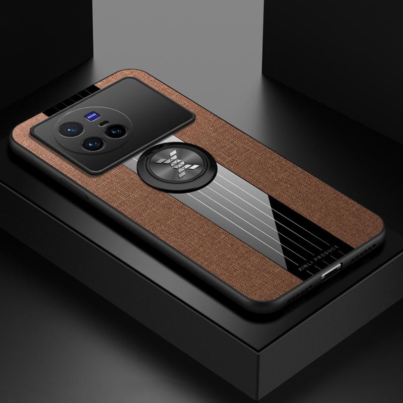 Θήκη κινητού τηλεφώνου TPU με υφή υφάσματος ραφής για vivo X80 XINLI με δακτύλιο στήριξης (Καφέ) (XINLI)