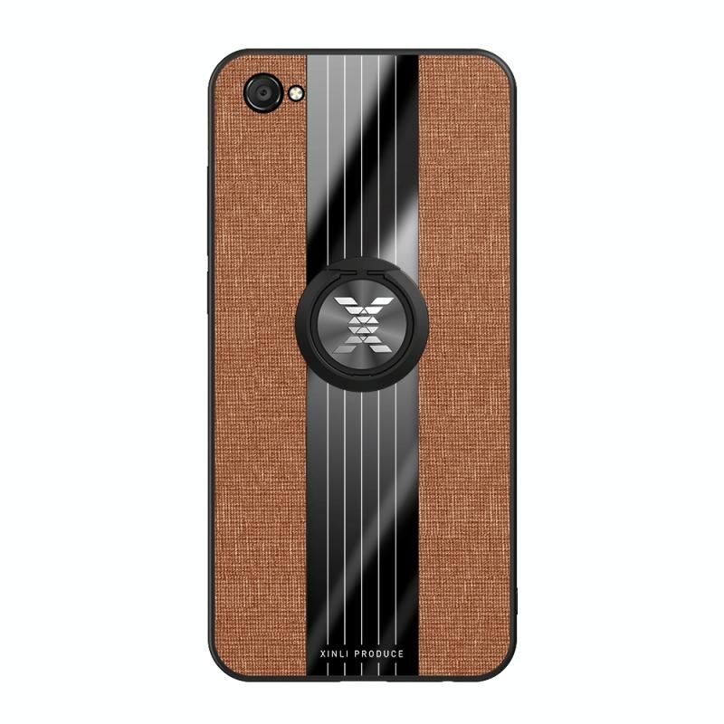 Θήκη προστασίας TPU με υφή ραφής, αντικραδασμική για Vivo X9 XINLI με δακτύλιο στήριξης (Κόκκινη) (Καφέ)