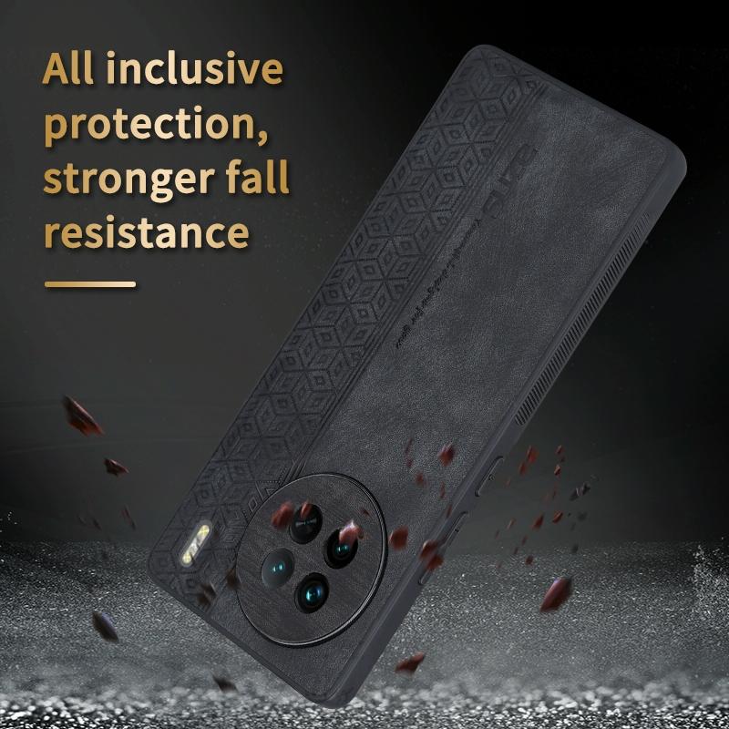 Θήκη τηλεφώνου με ανάγλυφη υφή δέρματος για vivo X90 AZNS 3D (Μαύρο) (Σκούρο πράσινο)