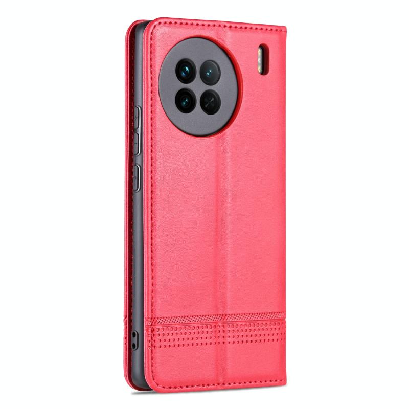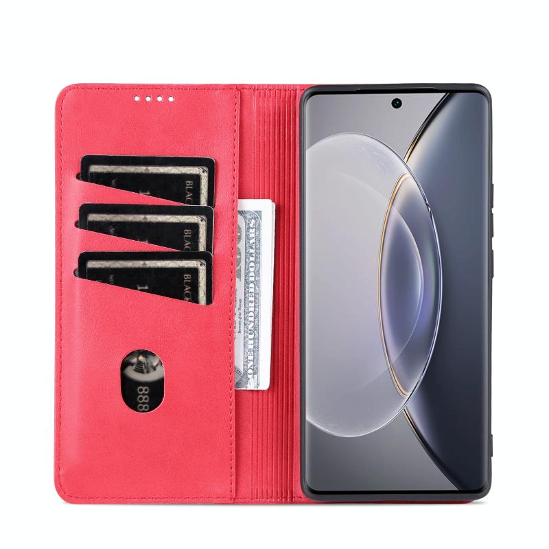 Θήκη τηλεφώνου από δέρμα με μαγνητική υφή μοσχαριού για vivo X90 AZNS (Σκούρο Καφέ) (Κόκκινο)