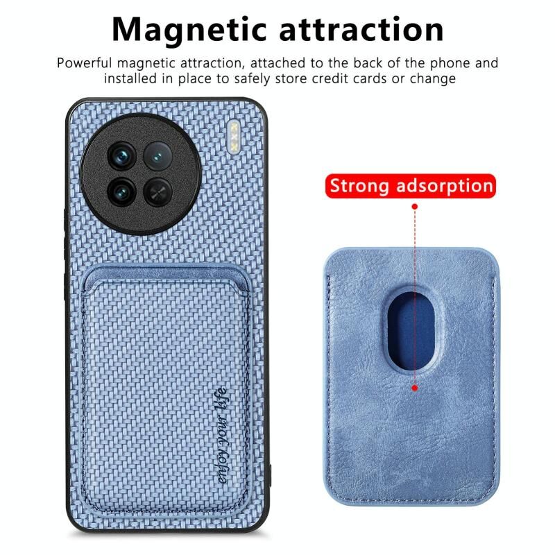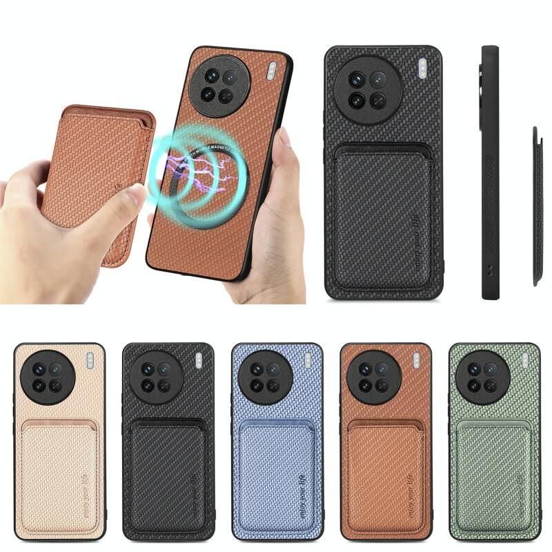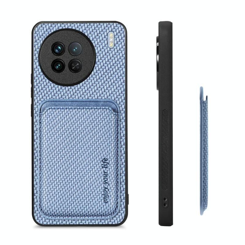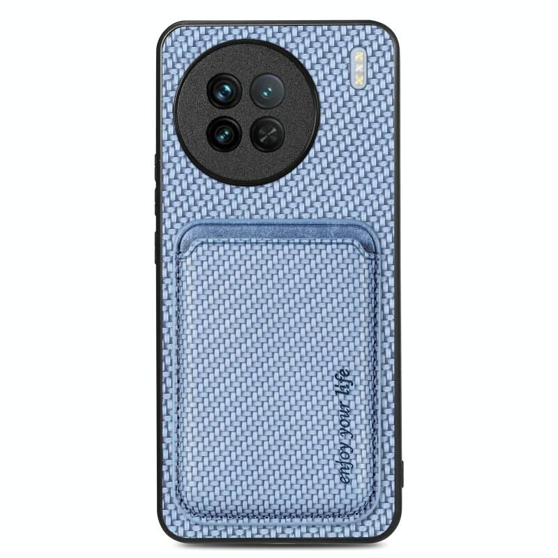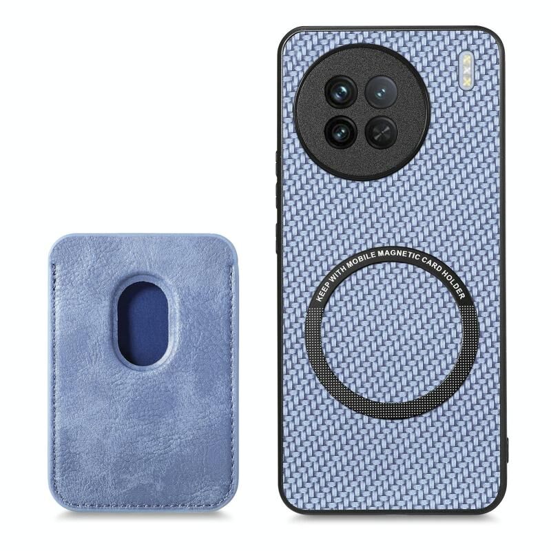 For vivo X90 Carbon Fiber Leather Card Magsafe Phone Case(Blue)