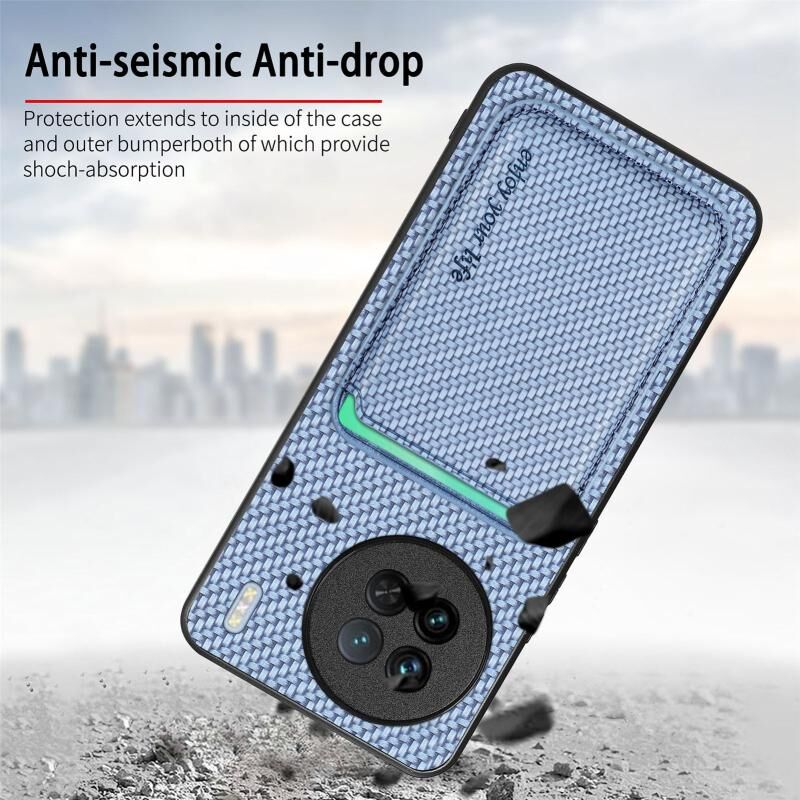 For vivo X90 Carbon Fiber Leather Card Magsafe Phone Case(Khaki)