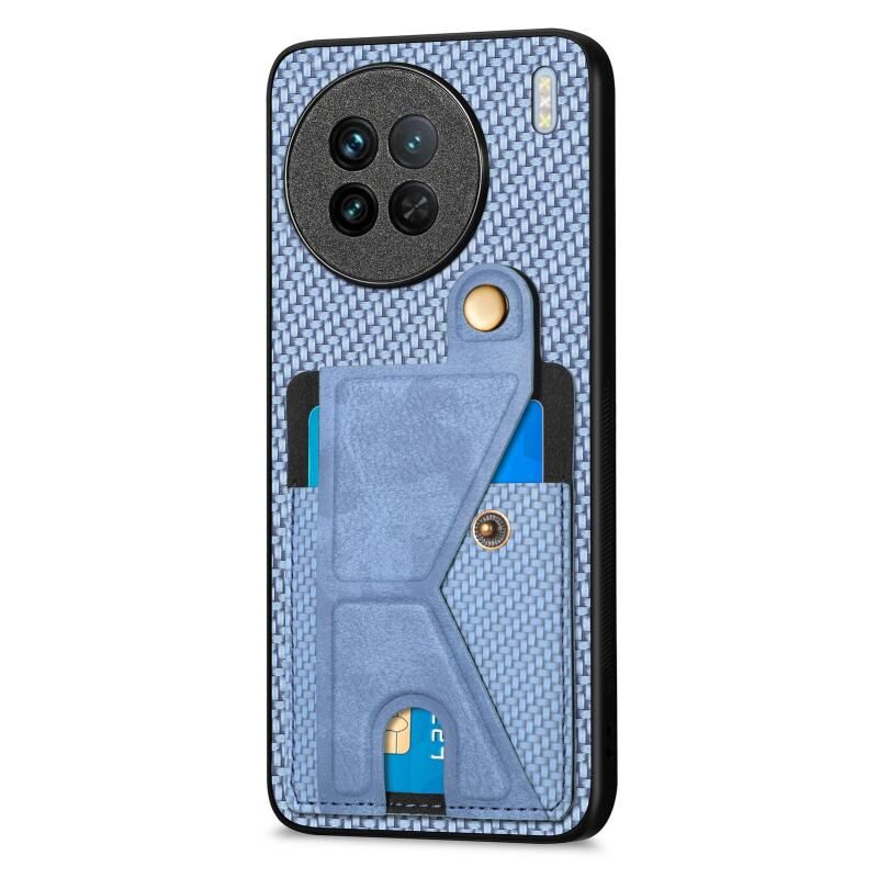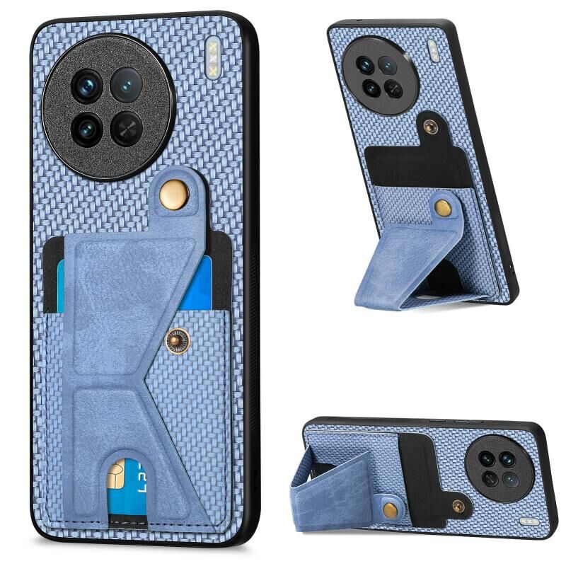 Για vivo X90 Carbon Fiber πορτοφόλι Flip κάρτα K-διαμορφωμένο κάτοχος τηλέφωνο υπόθεση (Μπλε)