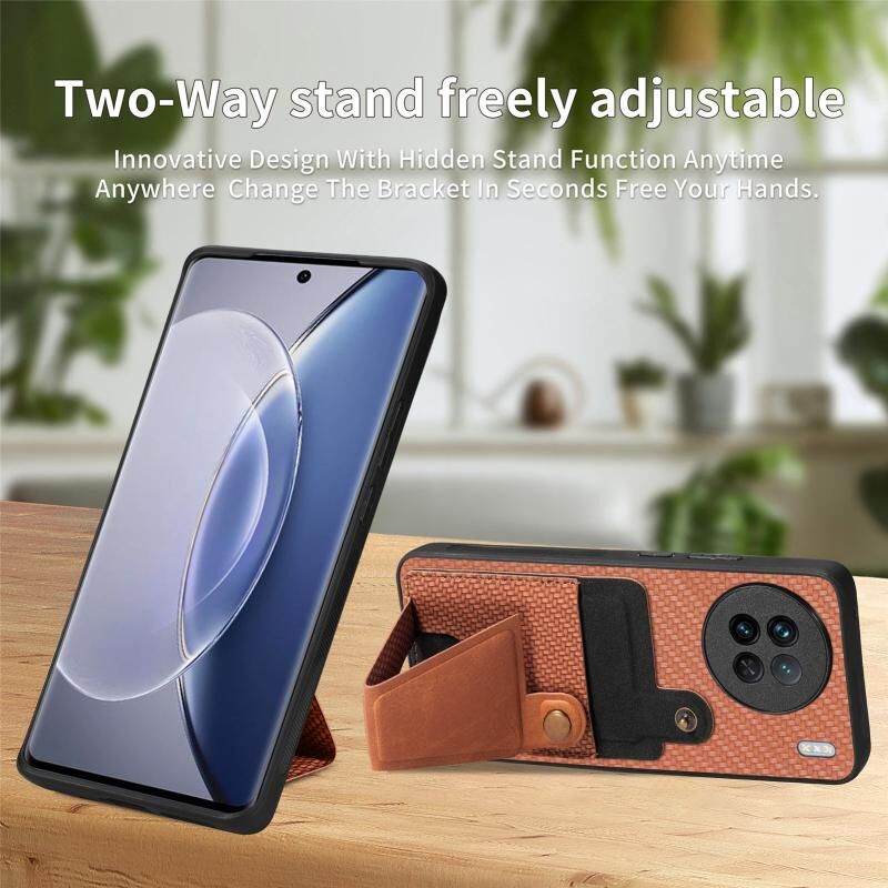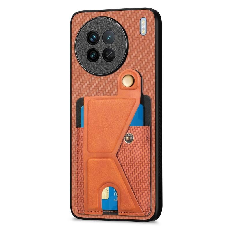 Για vivo X90 Carbon Fiber πορτοφόλι Flip κάρτα K-σχήμα κάτοχος υπόθεση τηλεφώνου (Καφέ)