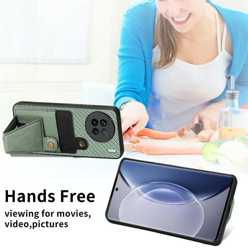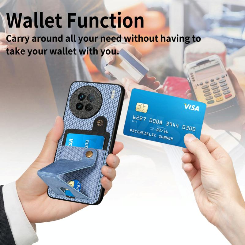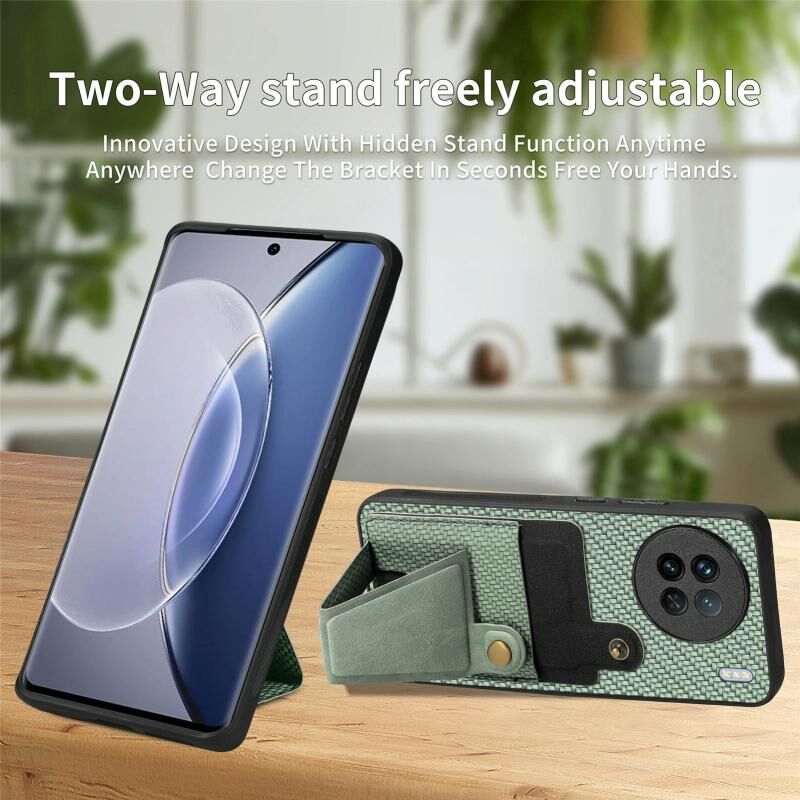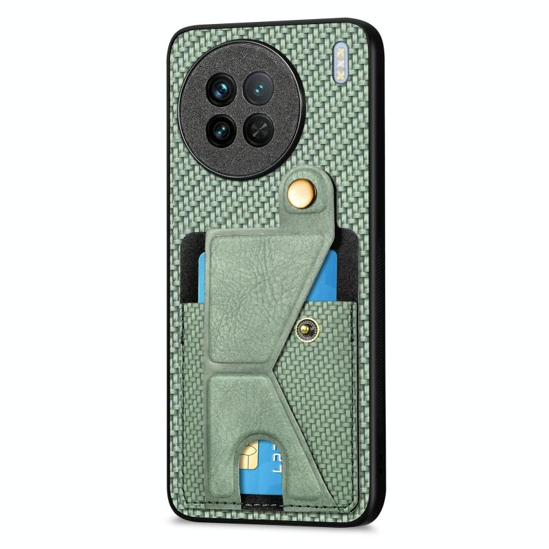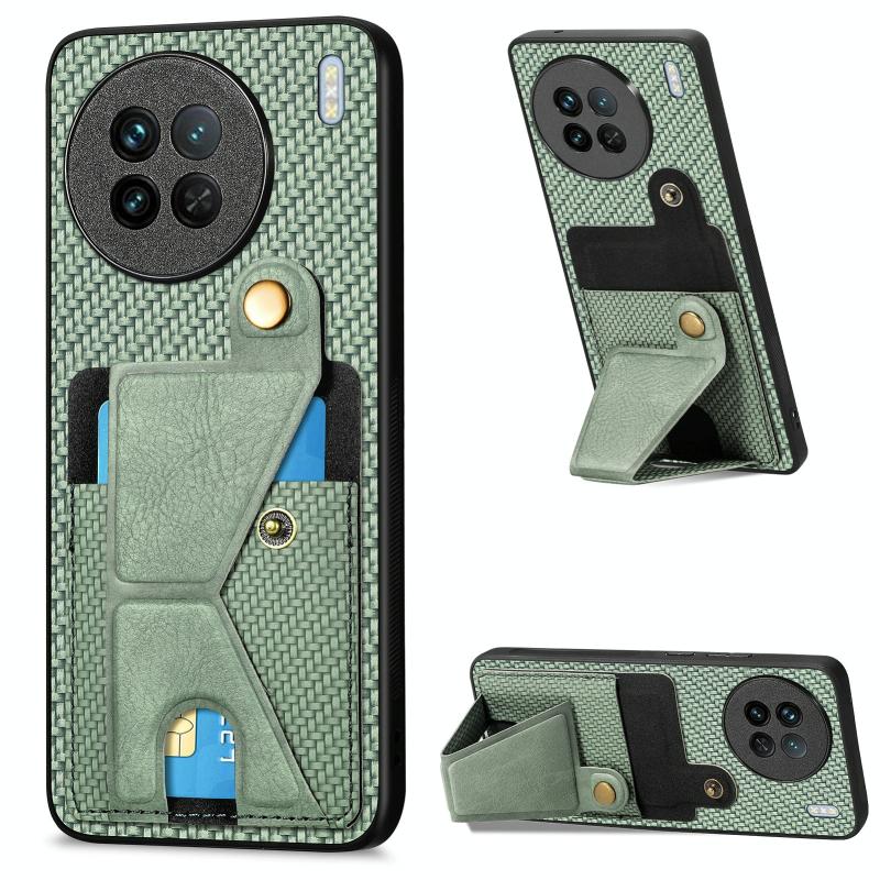 For vivo X90 Carbon Fiber Wallet Flip Card K-shaped Holder Phone Case(Green)