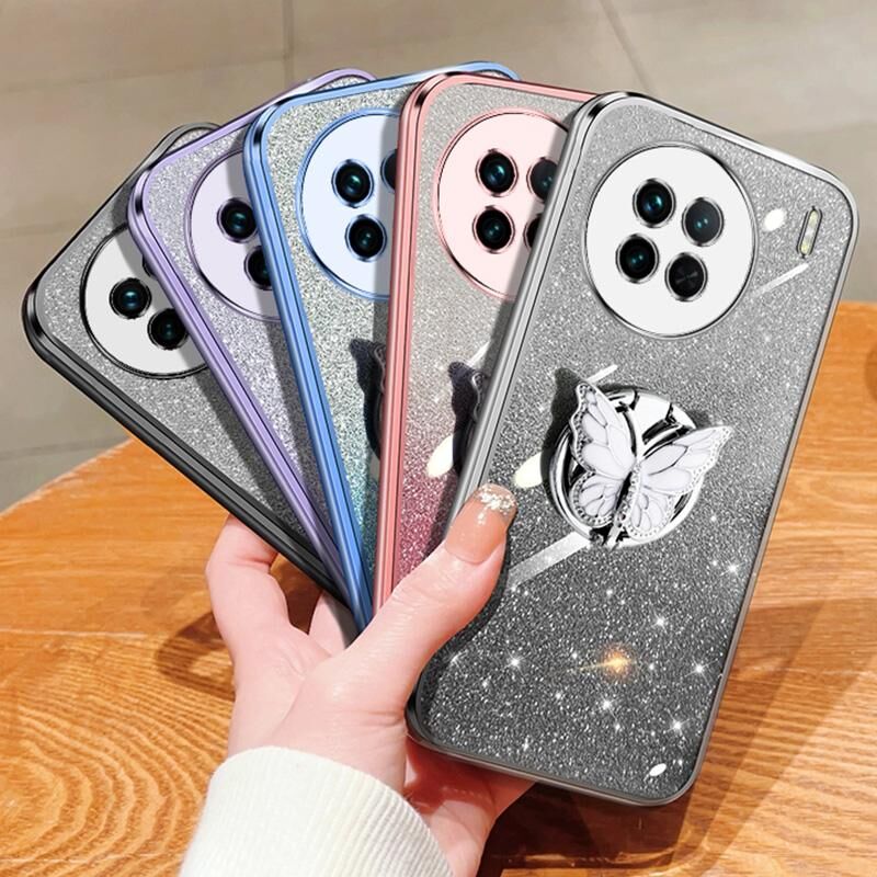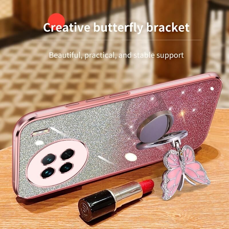 Θήκη τηλεφώνου TPU για vivo X90 με επιμετάλλωση, διαβαθμισμένη λάμψη, σχέδιο πεταλούδας (Ροζ)
