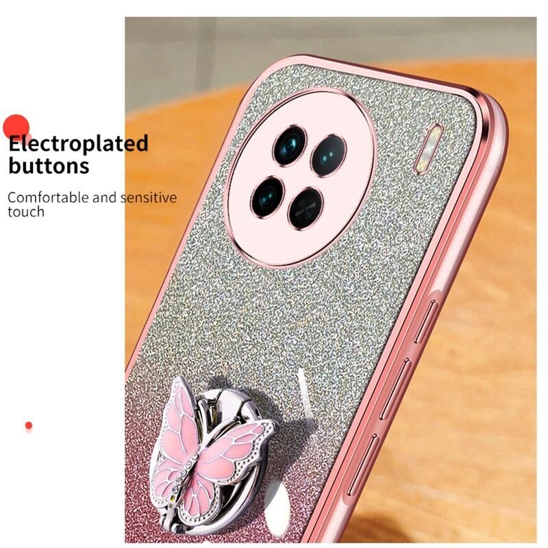Θήκη τηλεφώνου TPU για vivo X90 με επιμετάλλωση, διαβαθμισμένη λάμψη, σχέδιο πεταλούδας (Ροζ)