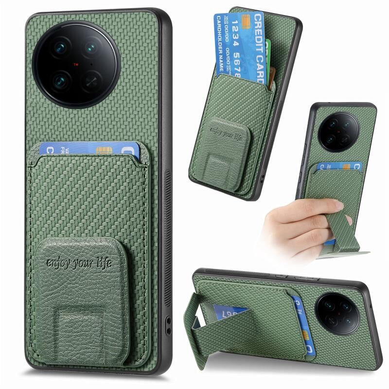 Θήκη τηλεφώνου για vivo X90 Pro 5G από ανθρακονήματα με κάρτες και βάση στήριξης (Μπλε)
