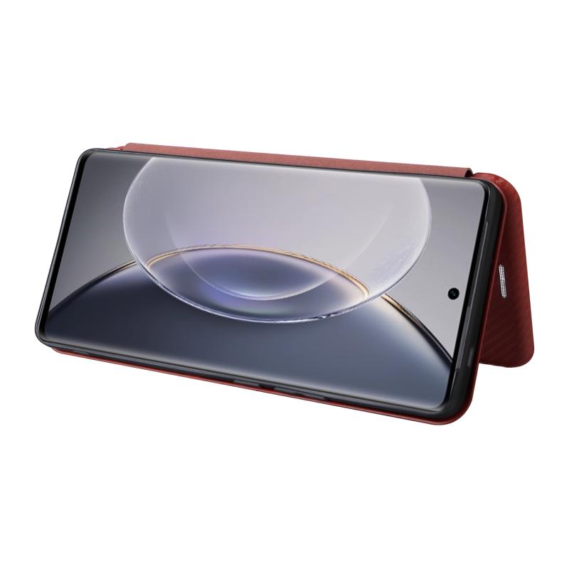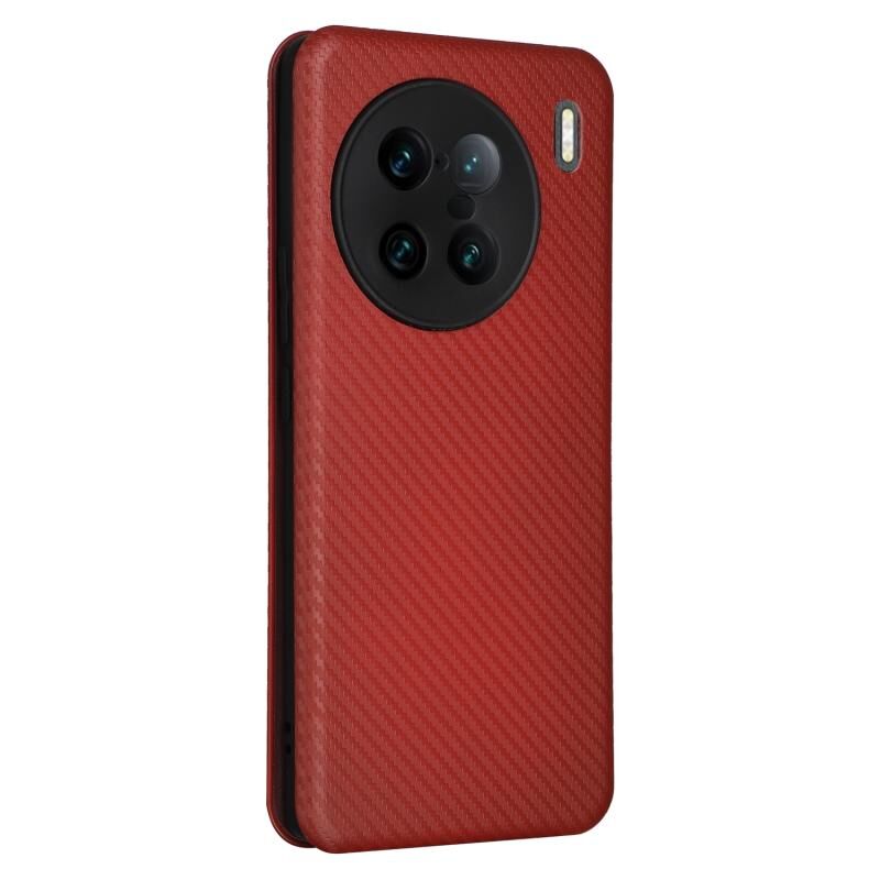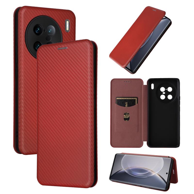 Θήκη τηλεφώνου από δέρμα με αναδιπλούμενο σχέδιο για vivo X90 Pro+ 5G, υφή ανθρακονήματος (Καφέ)