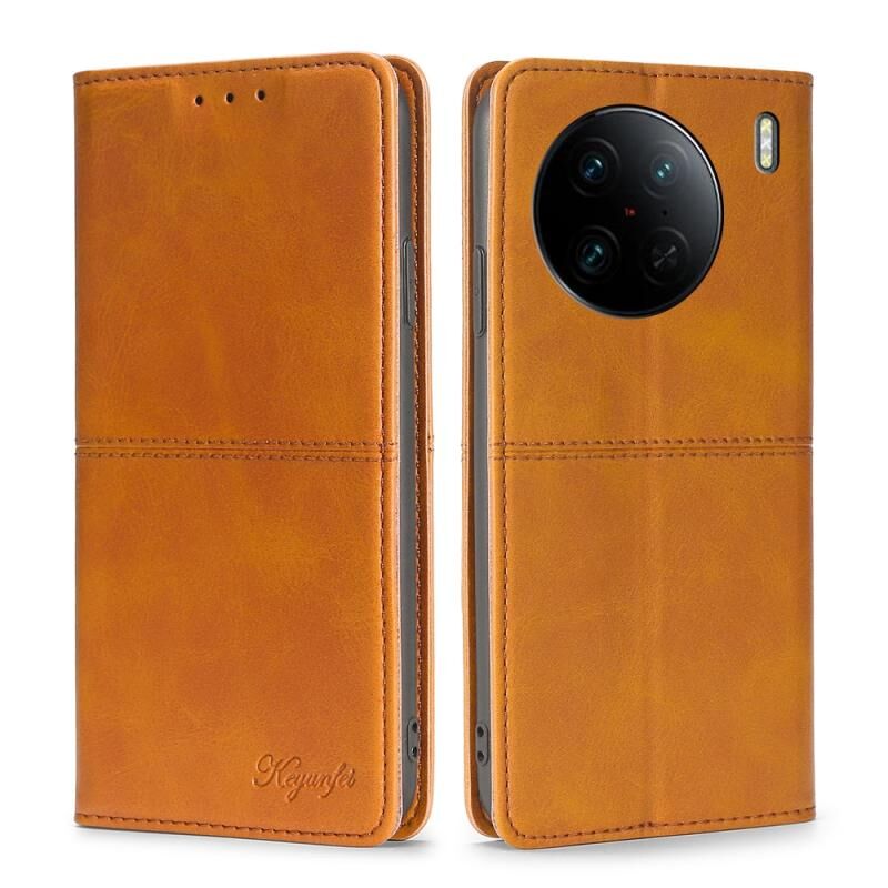 Για vivo X90 Pro 5G Cow Texture μαγνητική οριζόντια Flip δέρμα τηλέφωνο υπόθεση (Ανοιχτό Καφέ)