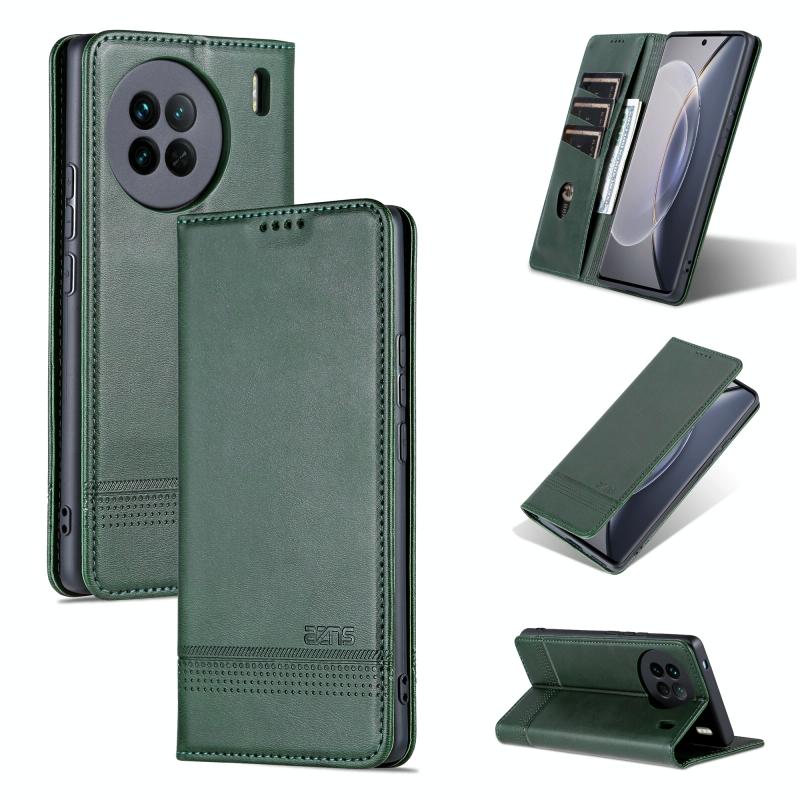 Θήκη τηλεφώνου από δέρμα με μαγνητική υφή μοσχαριού για vivo X90 Pro AZNS (Σκούρο Πράσινο) (Σκούρο πράσινο)