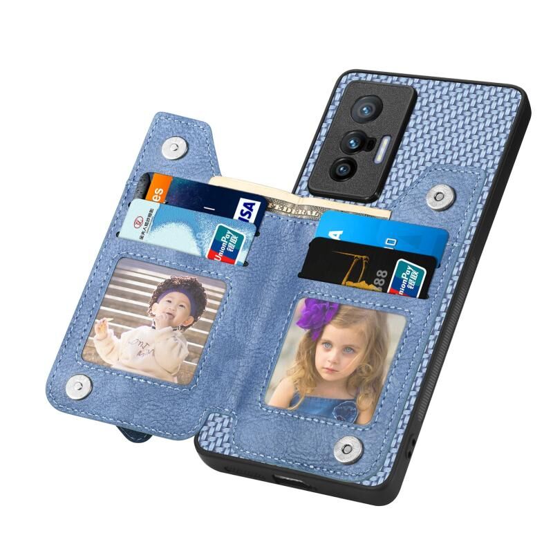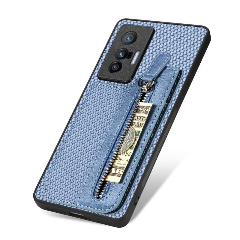 Για vivo X90 Pro Carbon Fiber οριζόντια Flip φερμουάρ πορτοφόλι υπόθεση τηλεφώνου (Μπλε)