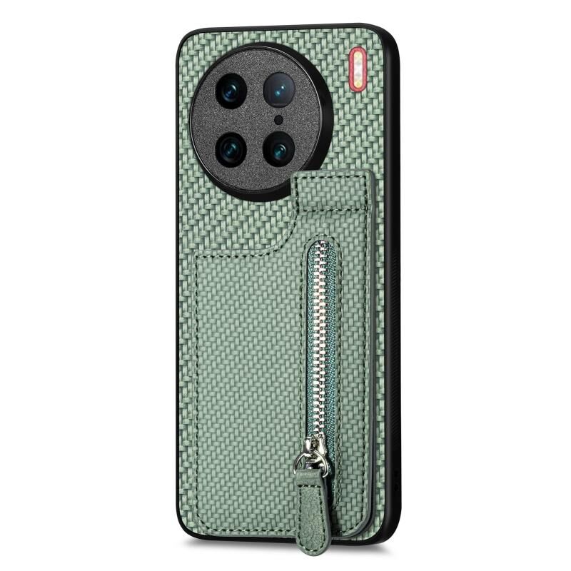 Για vivo X90 Pro Carbon Fiber Κάθετη Flip φερμουάρ τηλέφωνο υπόθεση (πράσινο)