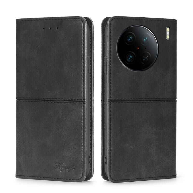 Για vivo X90 Pro + Αγελάδα υφή μαγνητική οριζόντια Flip δέρμα τηλέφωνο υπόθεση (μαύρο)
