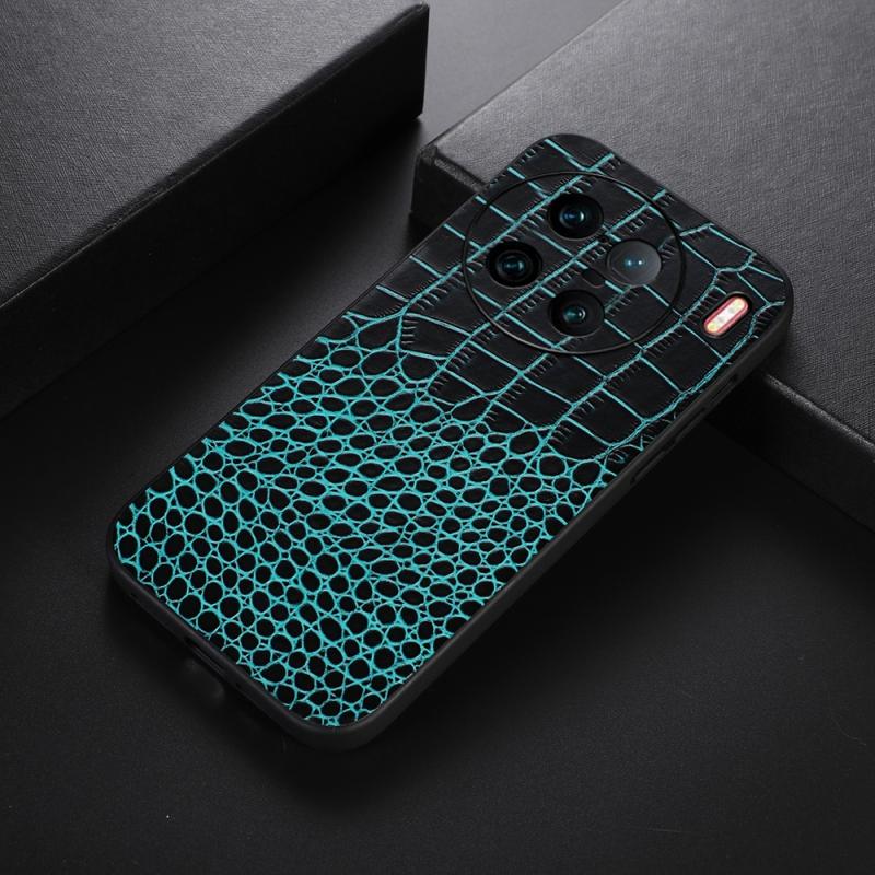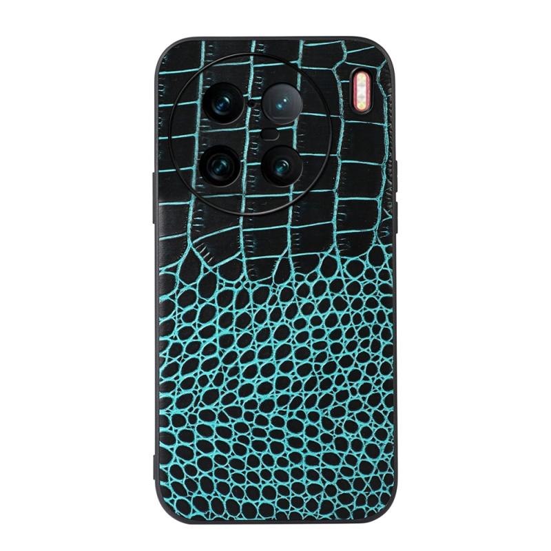 Θήκη τηλεφώνου για vivo X90 Pro+ από δέρμα αγελάδας με επικάλυψη κροκόδειλου (Κυανό Μπλε)