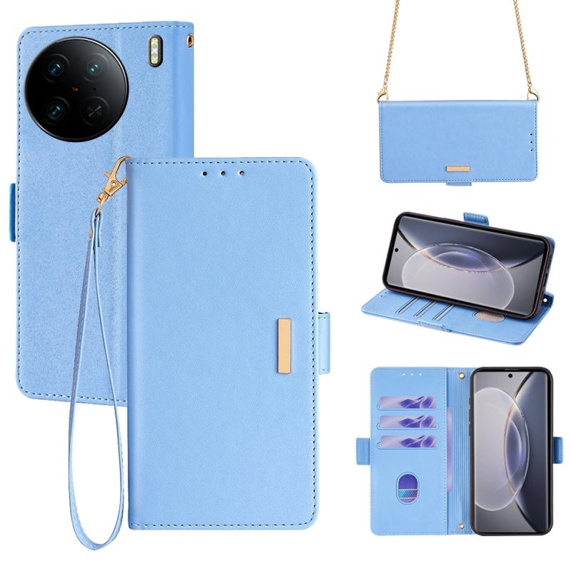 For vivo X90 Pro Crossbody Chain Leather Phone Case(Blue)