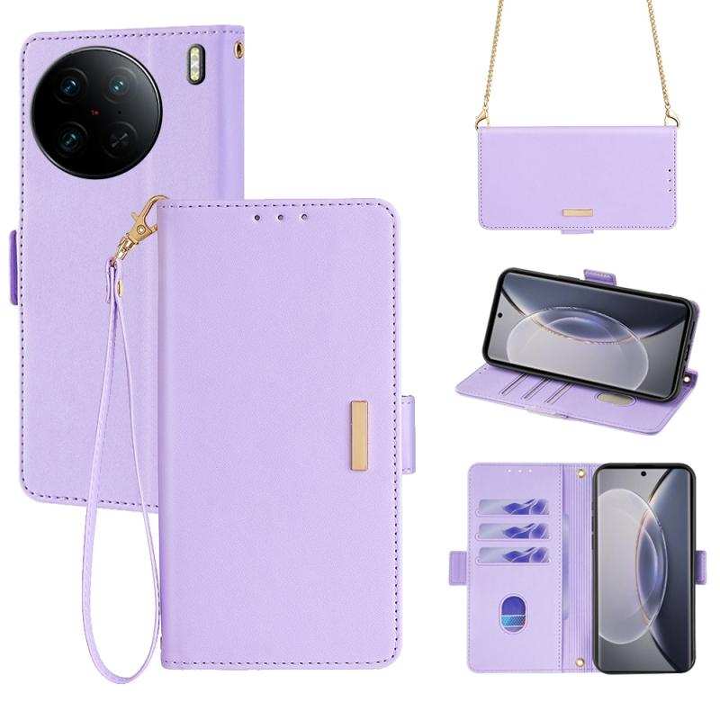For vivo X90 Pro Crossbody Chain Leather Phone Case(Purple)