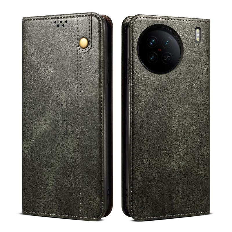 Θήκη τηλεφώνου για vivo X90 Pro από δέρμα με υφή τρελού αλόγου και κερί λαδιού (πράσινο)