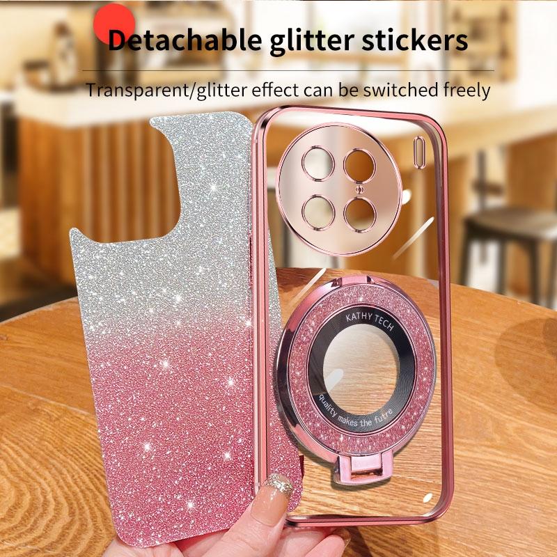 For vivo X90 Pro Plated Gradient Glitter Round Holder TPU Phone Case(Silver)