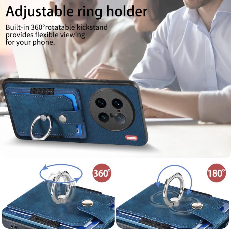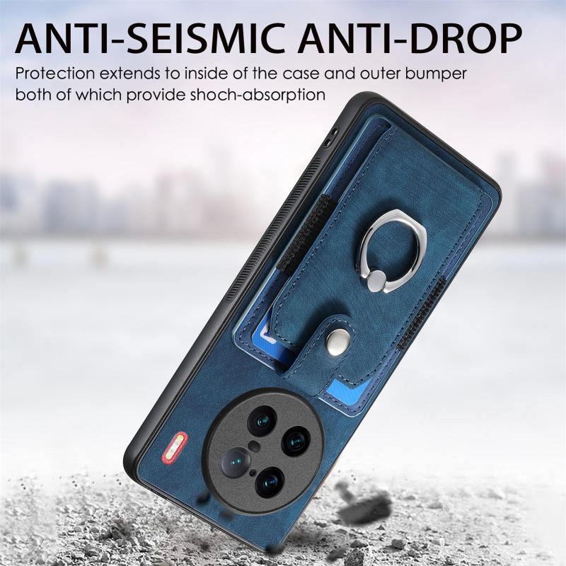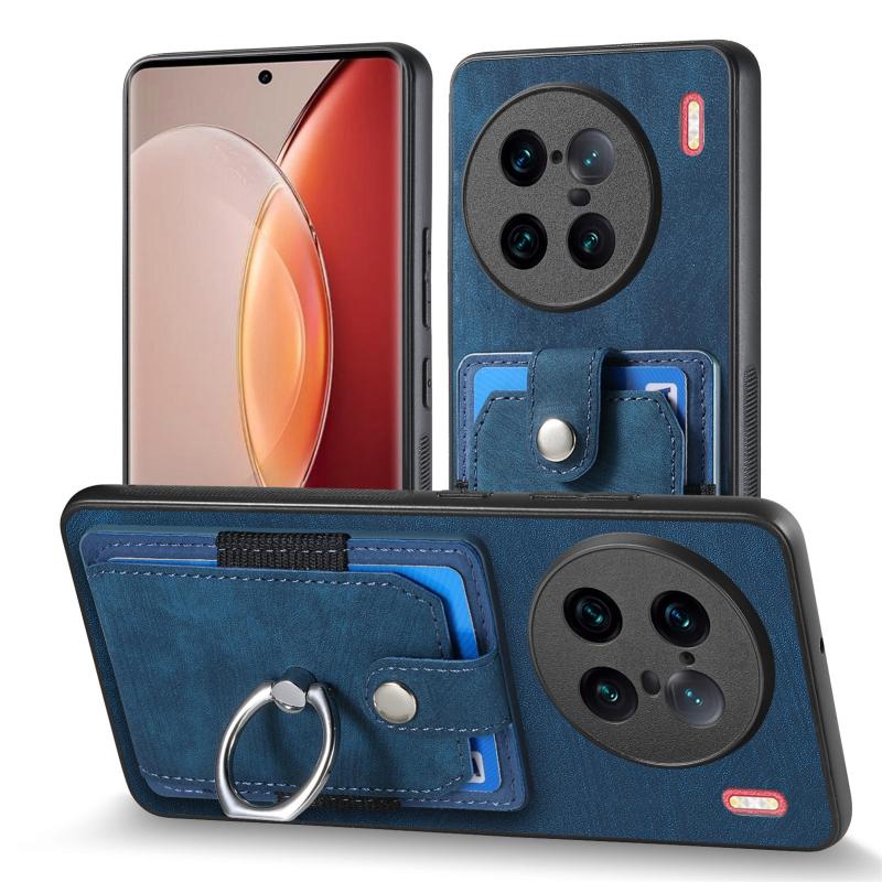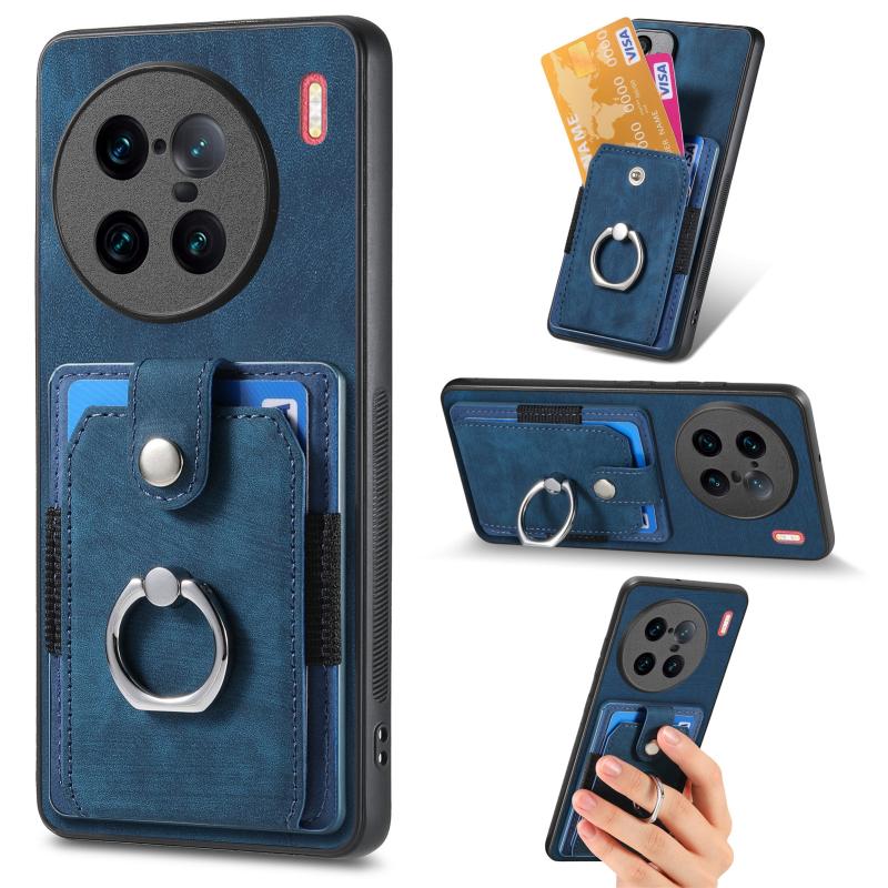 Θήκη τηλεφώνου με κάρτες και δακτύλιο, υφή retro για vivo X90 Pro+ (Μωβ)
