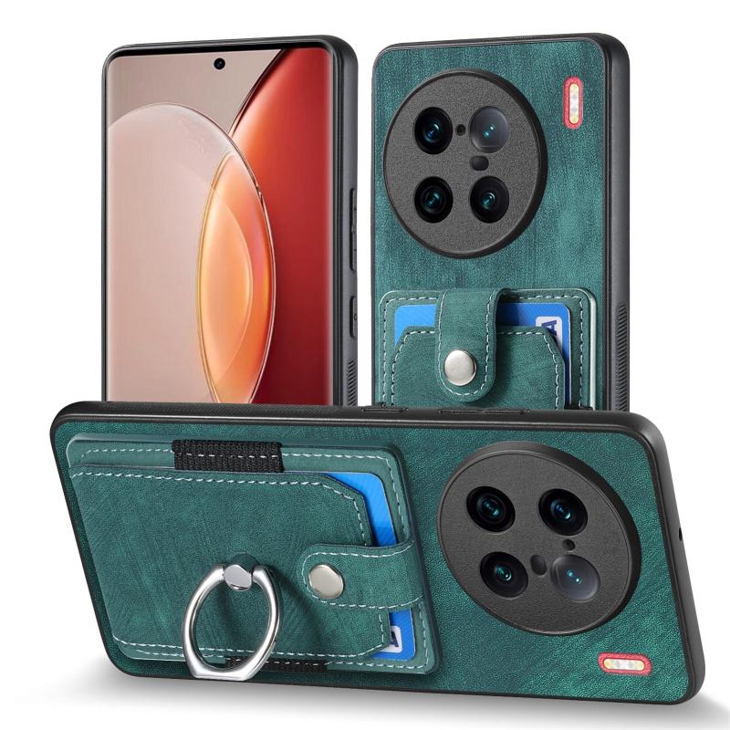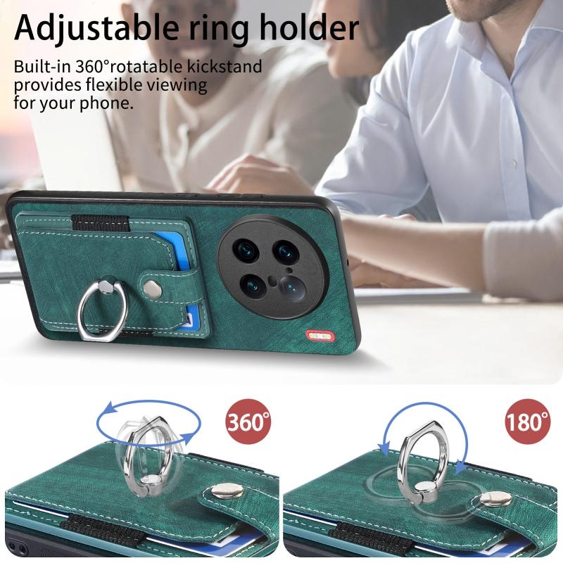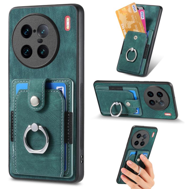 Θήκη τηλεφώνου με κάρτες και δακτύλιο, υφή retro για vivo X90 Pro+ (Μωβ)
