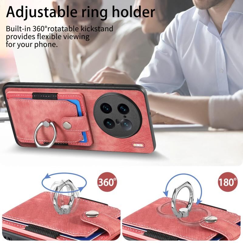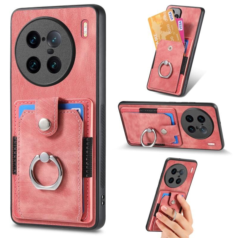 Θήκη τηλεφώνου με κάρτες και δακτύλιο, υφή retro για vivo X90 Pro+ (Μωβ)